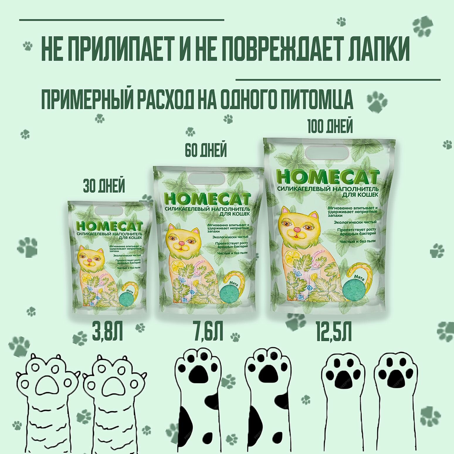 СохранитьНаполнитель силикагелевый для кошачьего туалета Homecat, с ароматом мяты, 3,8л интересное: