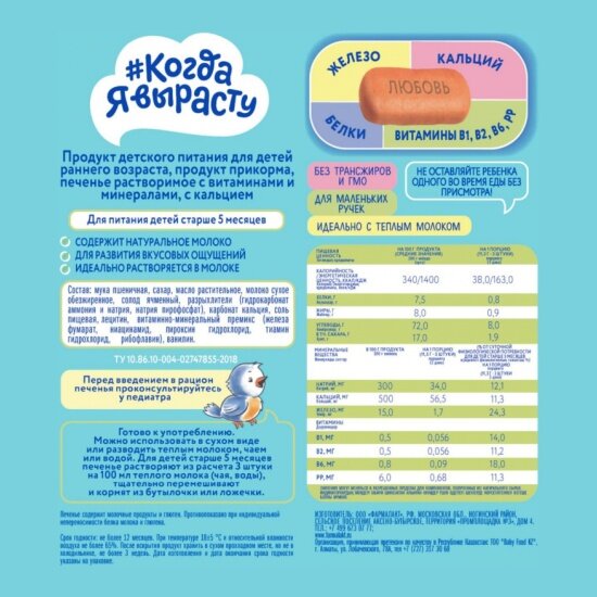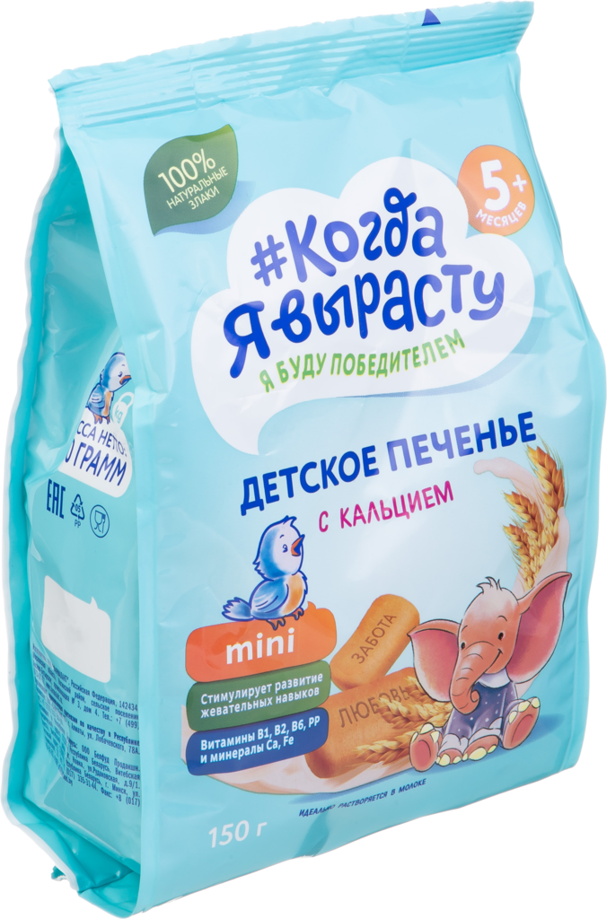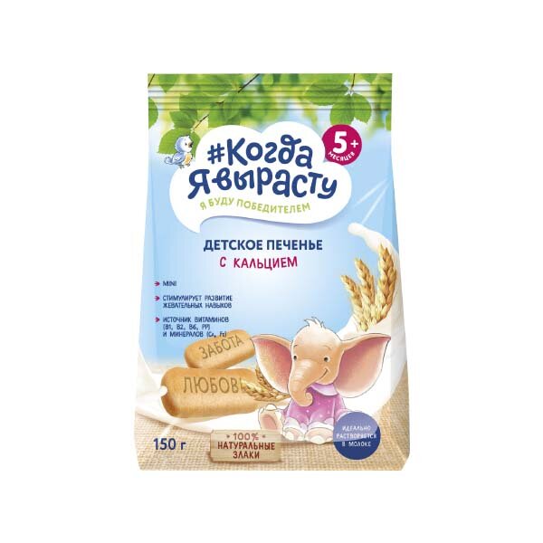 Печенье детское Когда Я вырасту обогащенное кальцием с витаминами и минералами (с 5 месяцев), 150 г, 1шт