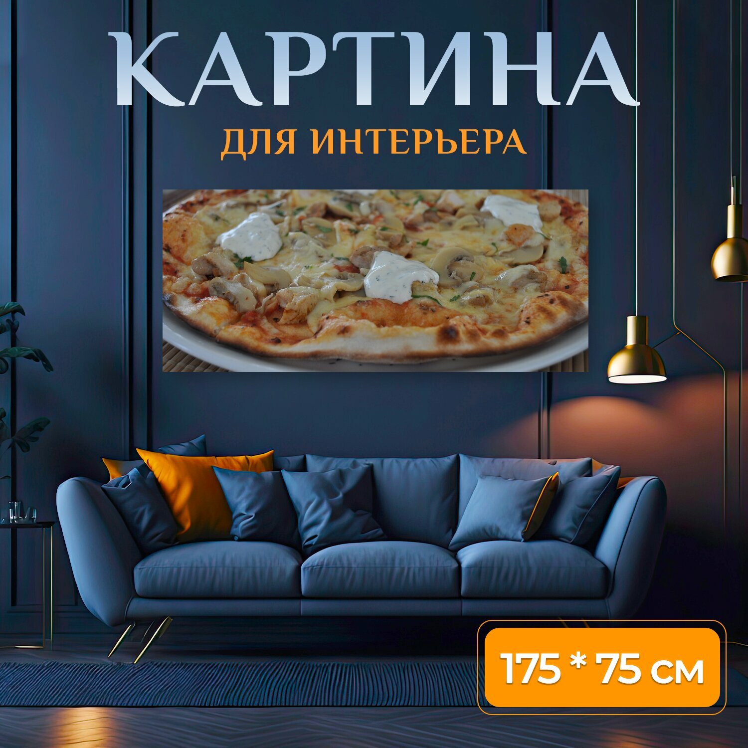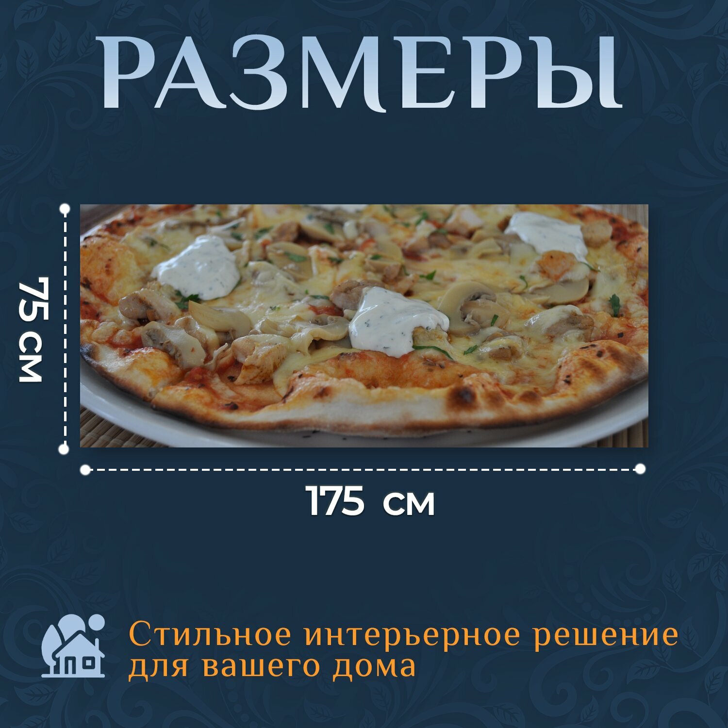 Картина на холсте "Пицца, еда, очень вкусно" на подрамнике 175х75 см. для интерьера интересное:
