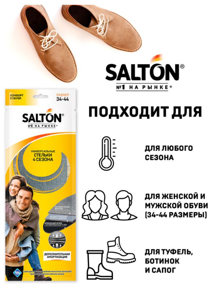 СохранитьSALTON Стельки "4 сезона", антибактериальная пропитка, активированный уголь интересное: