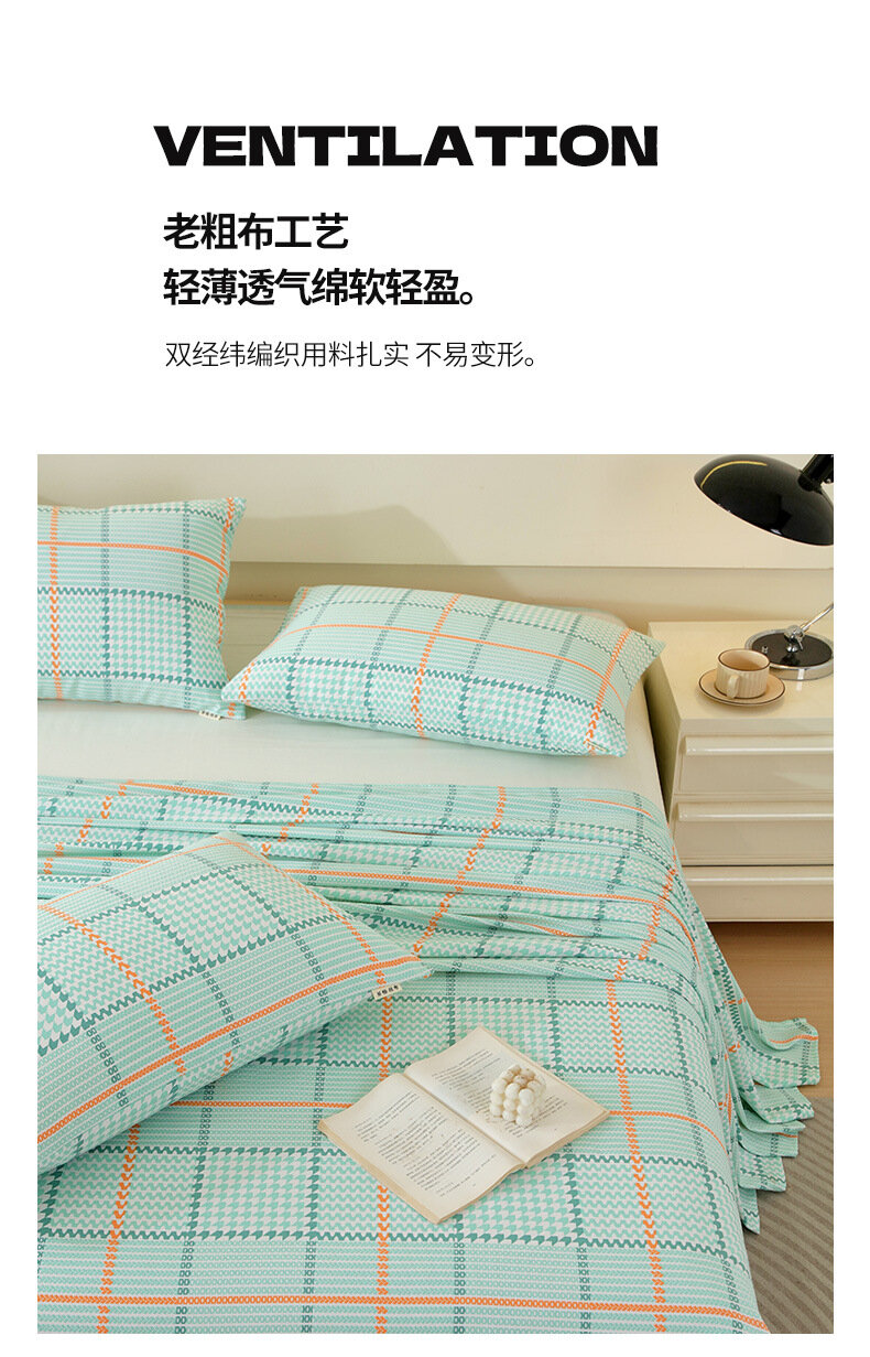 Купить Комплект постельного белья, хлопок-сырец, мятно-зеленая сетка, 3 предмета