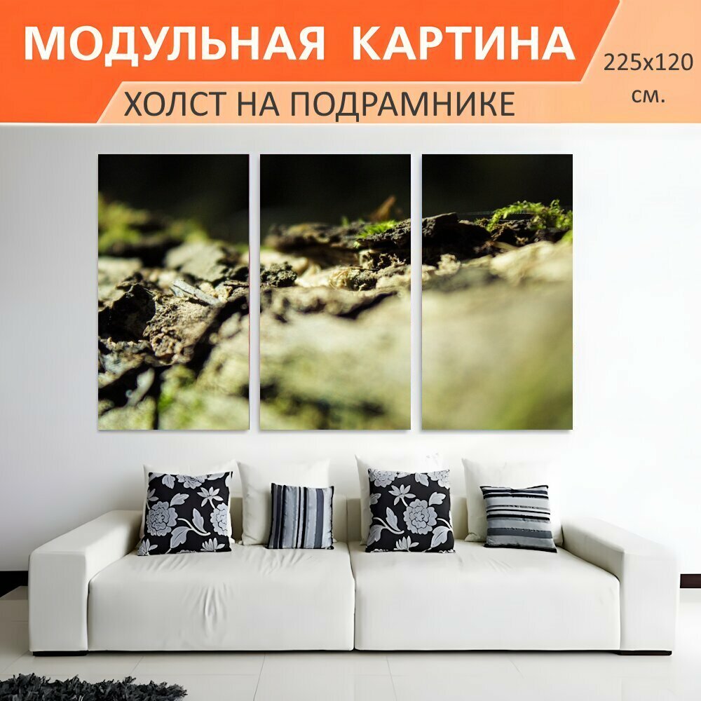 Модульная картина на холсте "Макрос, вниз, лес" триптих на подрамнике 225х120 см. для интерьера интересное: