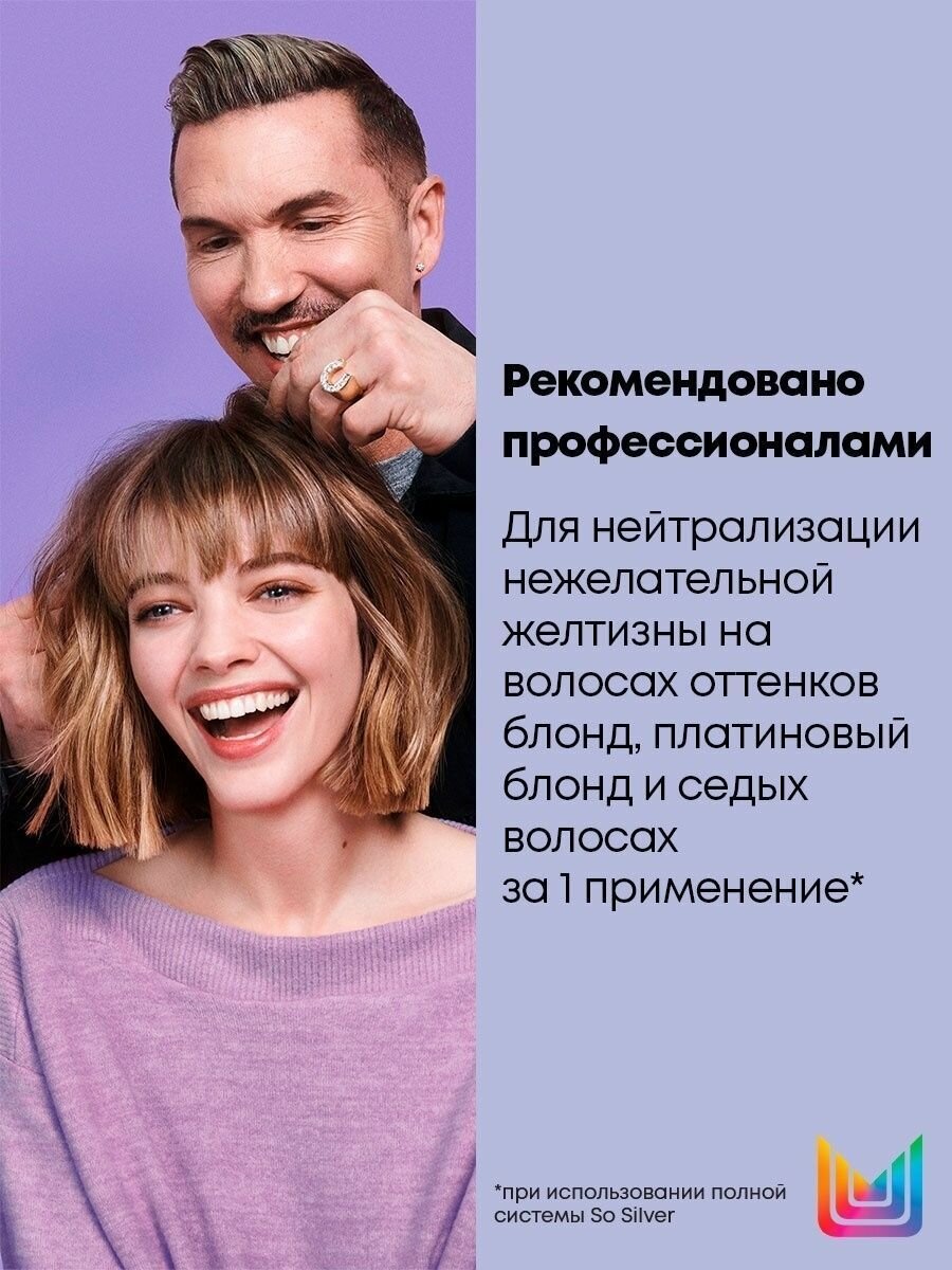 | Плюсы: | Хороший оттеночный шампунь, отбирает желтизну, подходит для мелированных волос. |