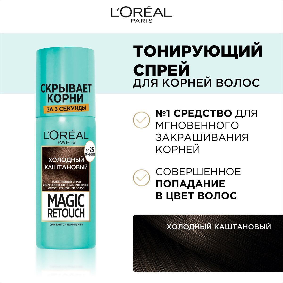 Тонирующий спрей L'oreal Paris для мгновенного закрашивания отросших корней Magic Retouch оттенок, Холодный каштан, 75 мл