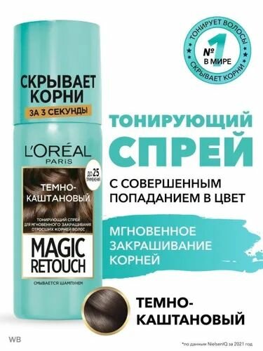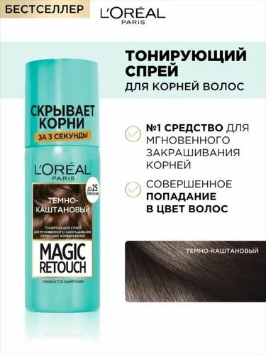 Тонирующий спрей L'OREAL PARIS для мгновенного закрашивания отросших корней Magic Retouch, оттенок Темно-каштановый, 75 мл