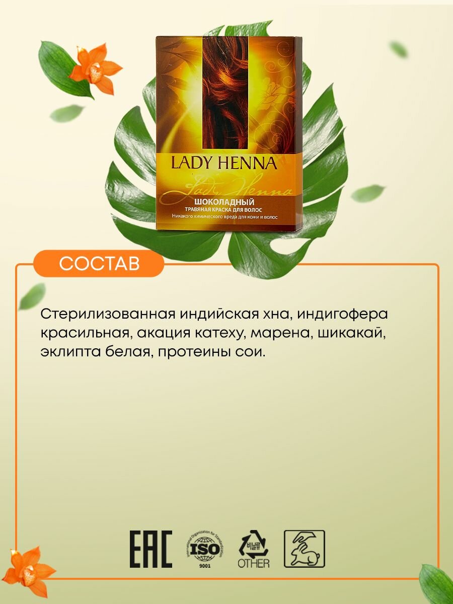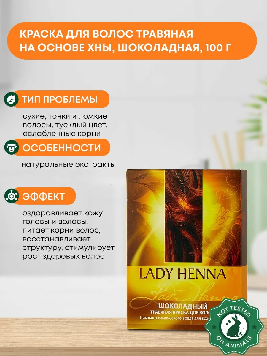 Краска для волос травяная на основе хны Шоколадная Lady Henna 100г