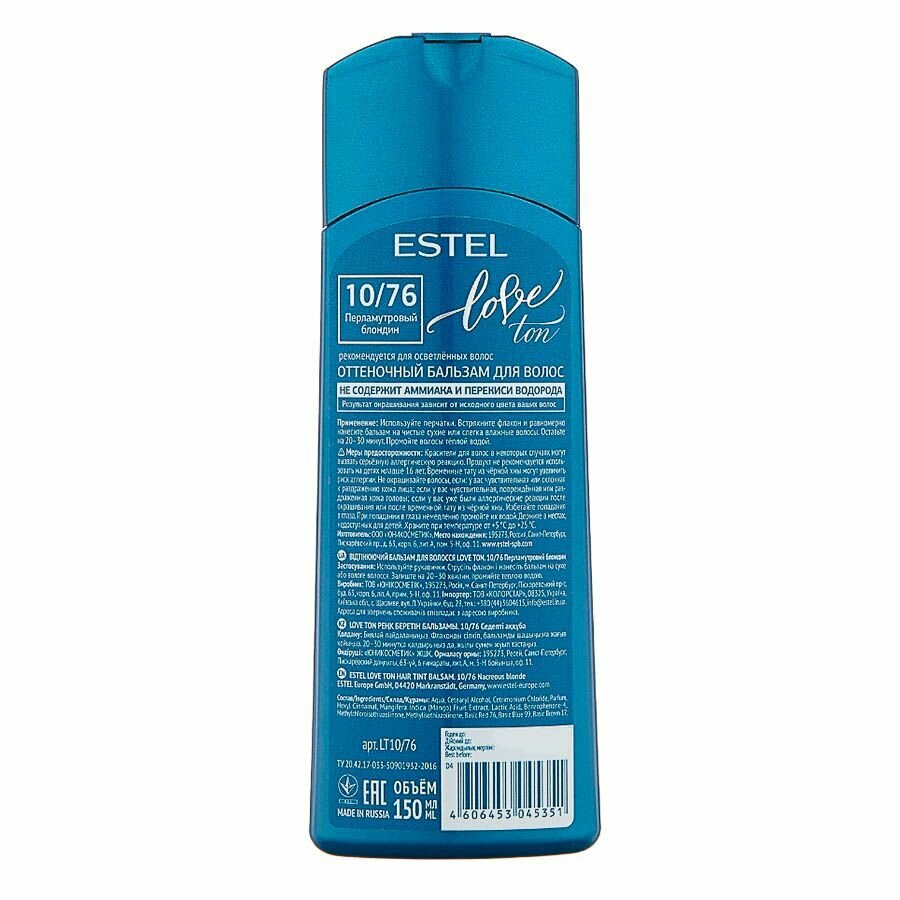 ESTEL, LOVE TON, Оттеночный бальзам №10/76, перламутровый блондин, 150 мл