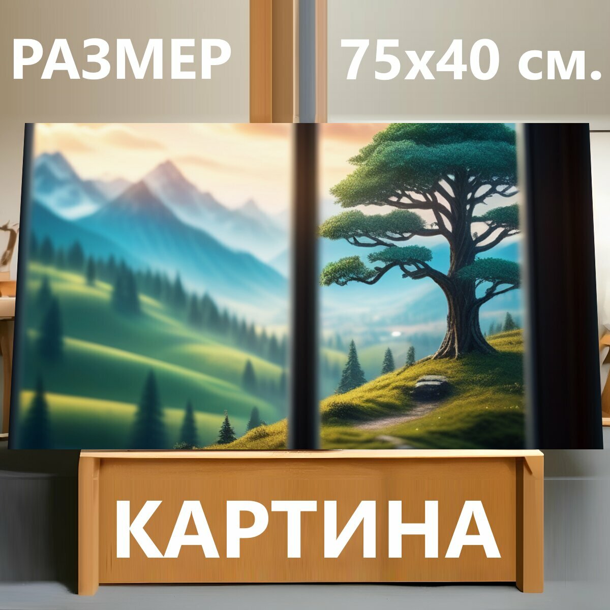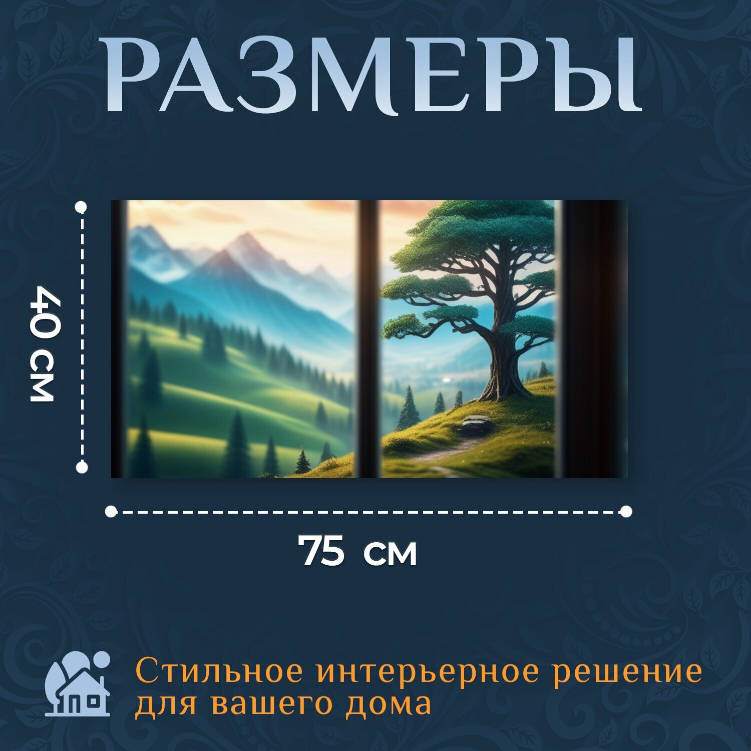 Картина на холсте "Пейзаж с окном картины , " на подрамнике 75х40 см. для интерьера интересное: