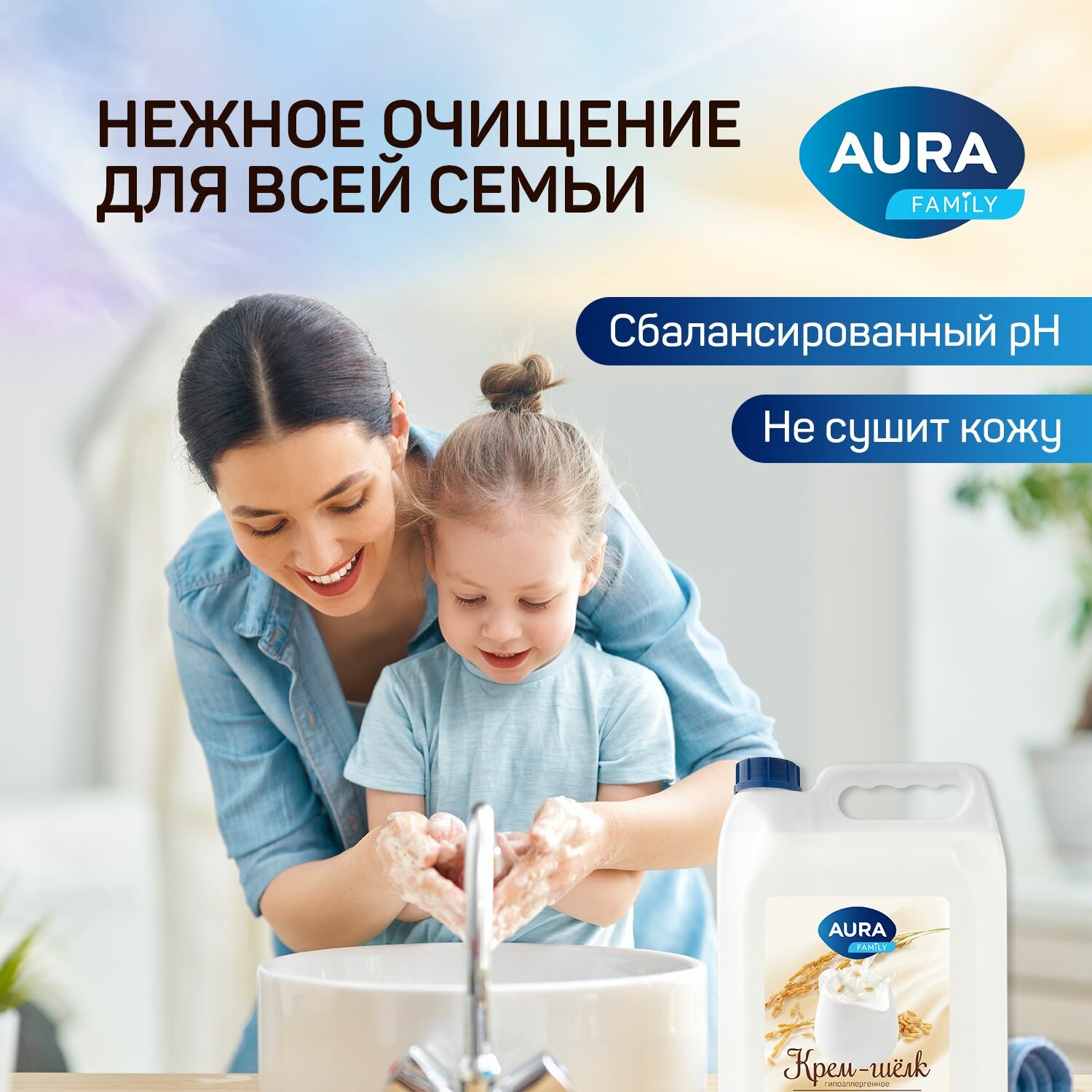 Жидкое гипоаллергенное мыло AURA для детей и взрослых, 5 литров