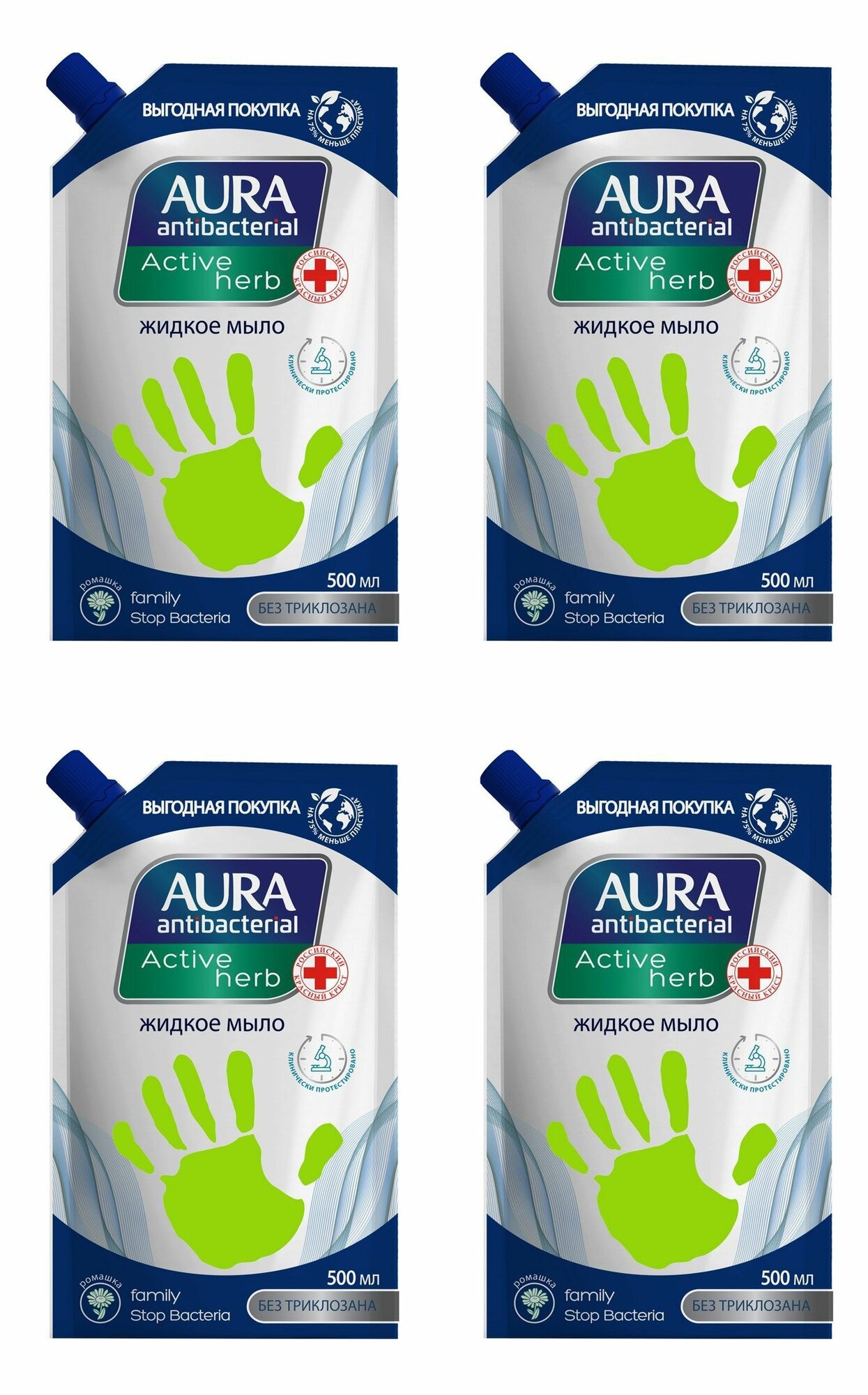 AURA Жидкое мыло с антибактериальным эффектом ромашка 500мл (4 шт в наборе)