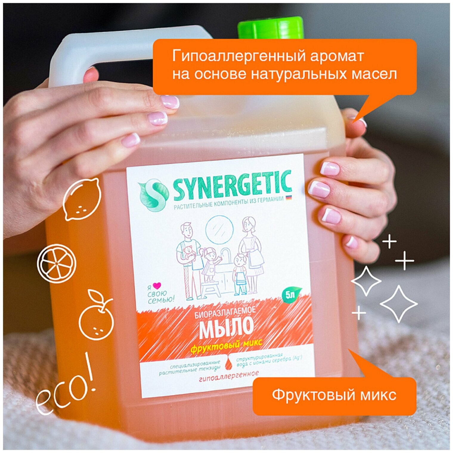 Мыло жидкое 5 л SYNERGETIC "Фруктовый микс", гипоаллергенное, биоразлагаемое, 105502 1 шт .