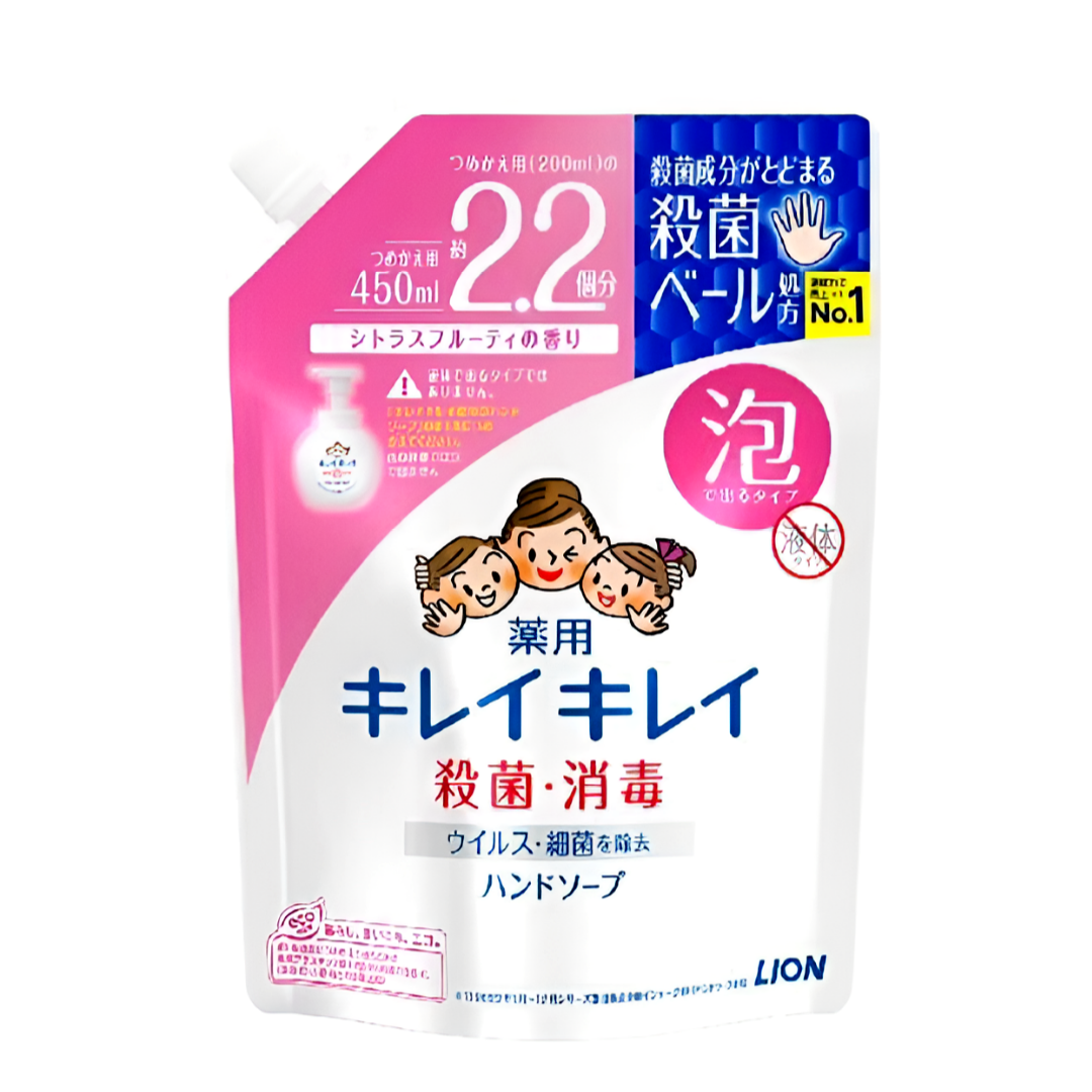 Купить Lion Kirei Kirei Жидкое антибактериальное мыло-пенка для рук с маслом лимона и фруктово--цитрусовым ароматом 450 мл в мягкой упаковке
