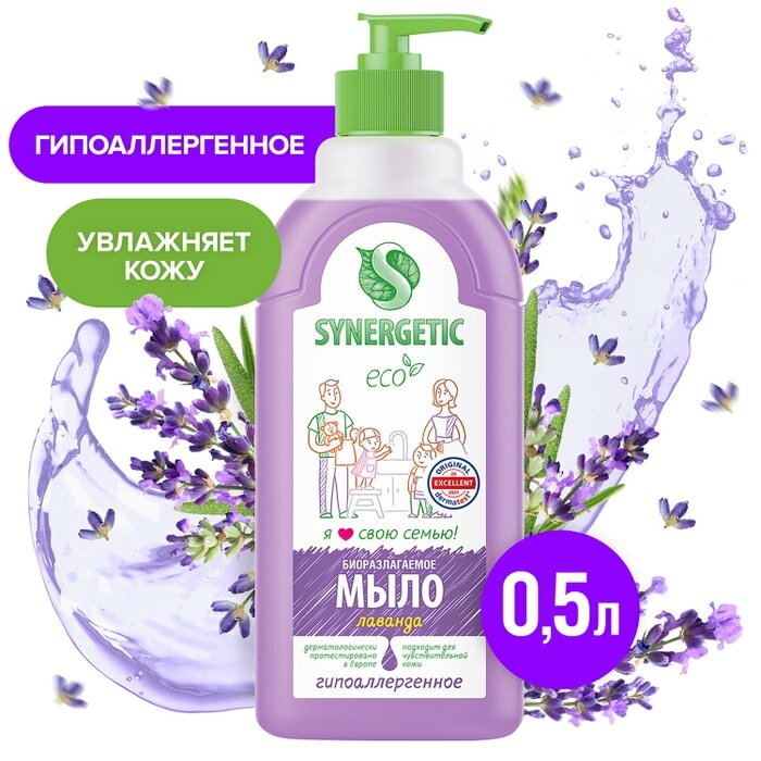 Synergetic Жидкое мыло Synergetic "Лаванда", гипоаллергенное, 0,5 л