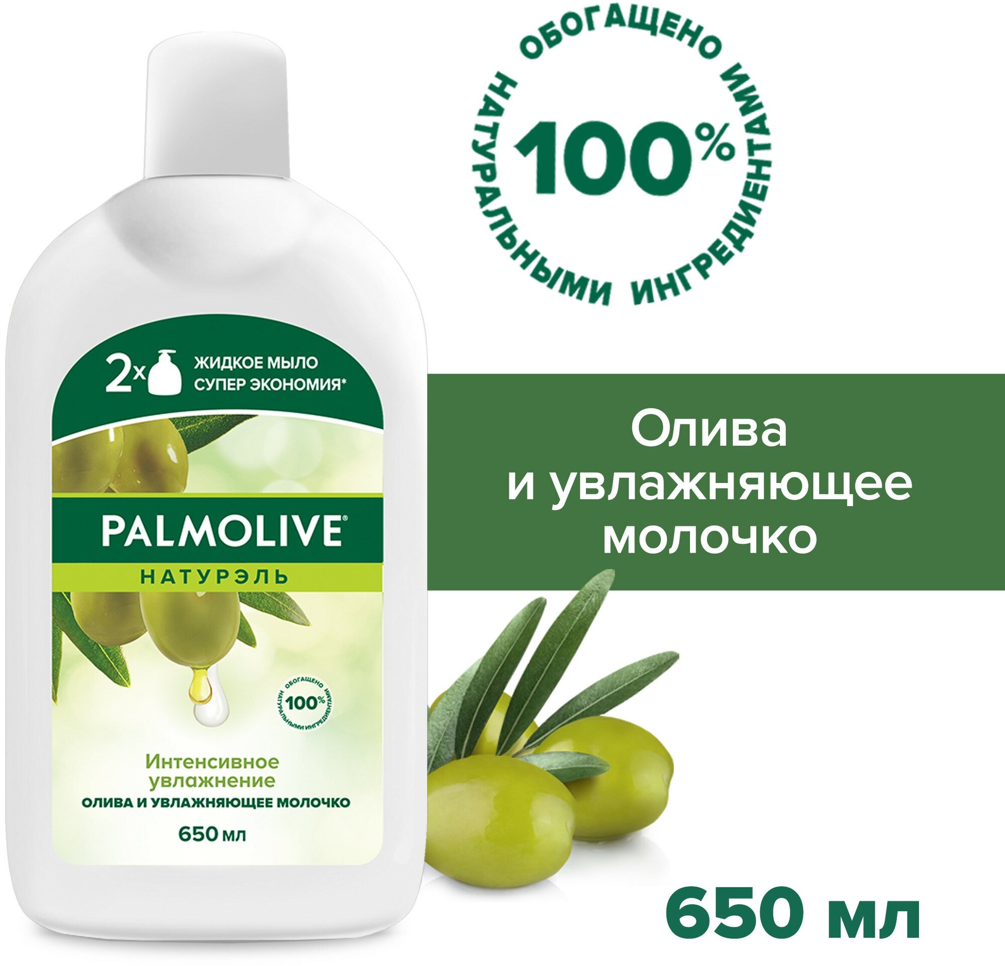 Palmolive Натурэль Интенсивное Увлажнение Олива и Увлажняющее молочко жидкое мыло, запасной блок, 650 мл