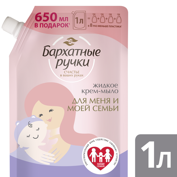 Бархатные ручки Крем-мыло Для меня и моей семьи жидкое, 1000 мл /