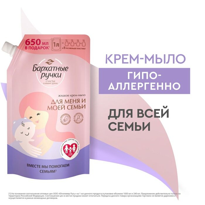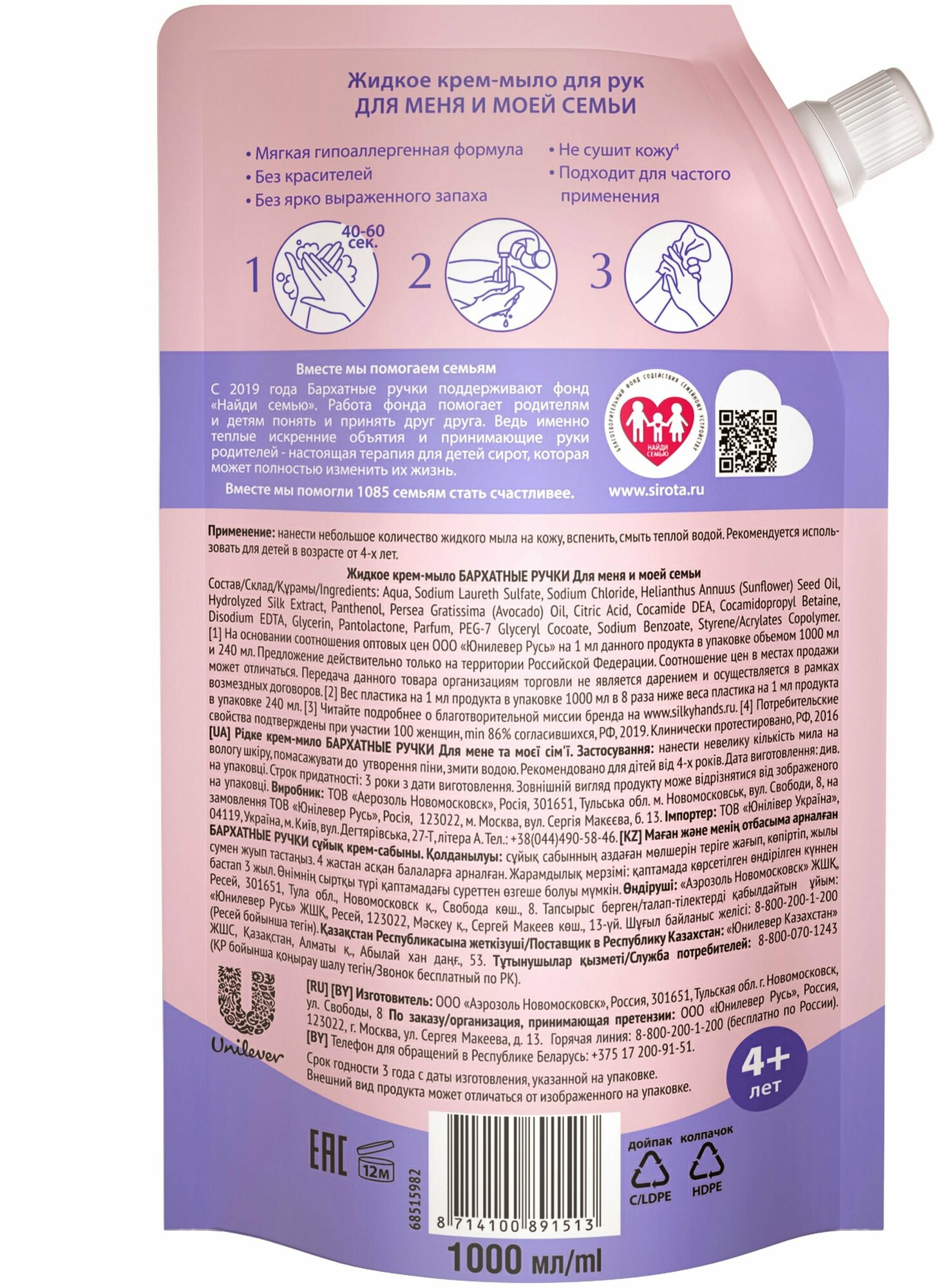 Бархатные Ручки жидкое крем-мыло для меня И моей семьи 1000 мл