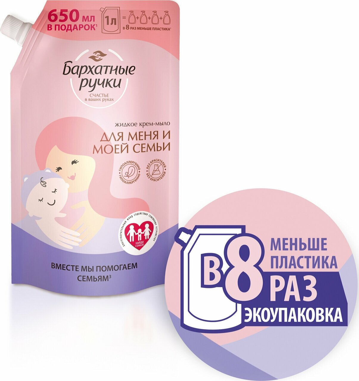 Крем-мыло жидкое бархатные ручки Для меня и моей семьи дойпак 1000 мл