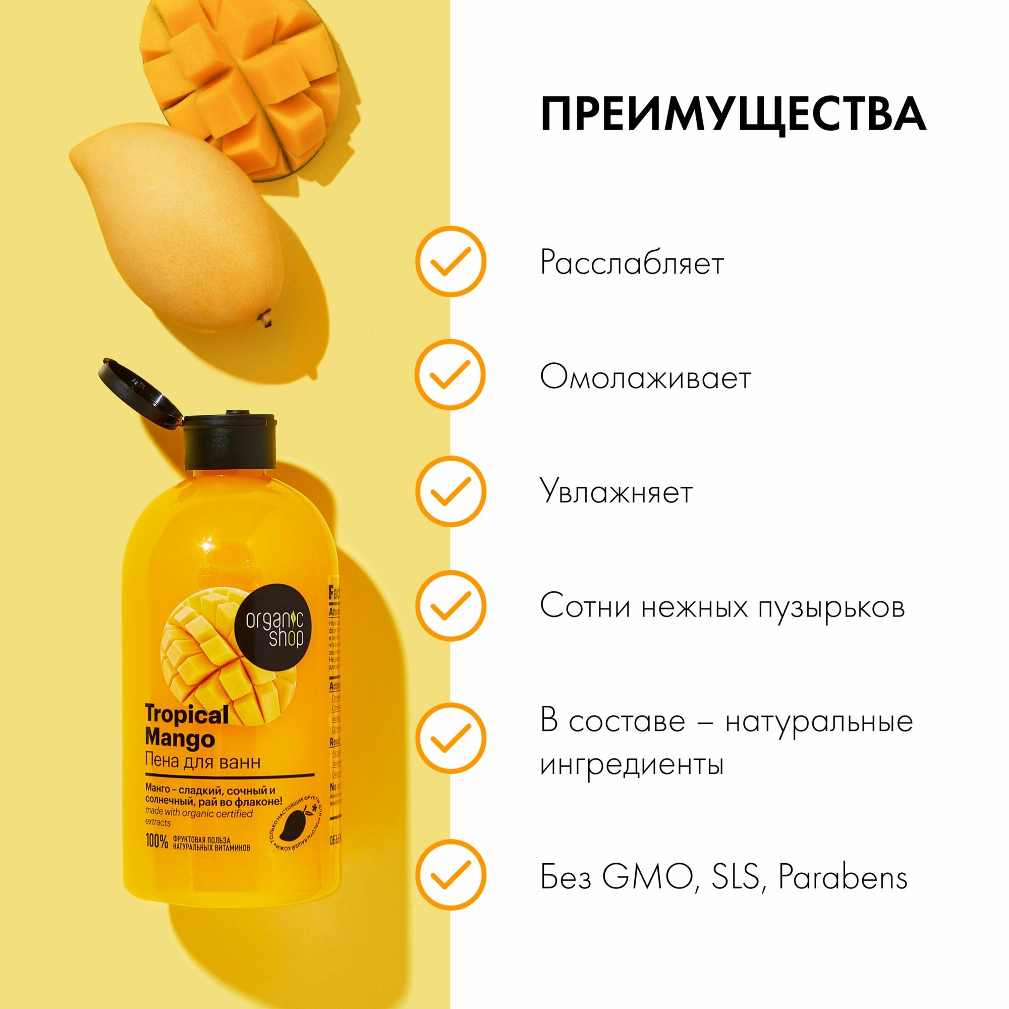 Пена для ванн Organic Shop «Тропический манго», 500 мл