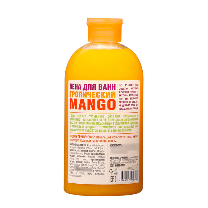 Пена для ванн Organic Shop HOME MADE Тропический Mango, 500 мл 4680007212758