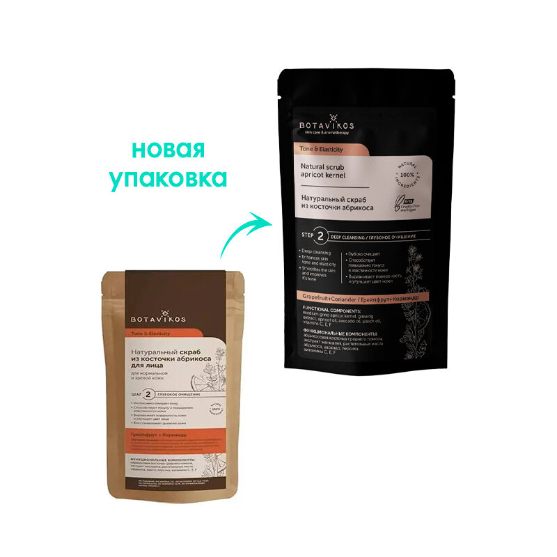 BOTAVIKOS Натуральный скраб из абрикосовой косточки для нормальной кожи и зрелой кожи TONE & ELASTICITY, 100 гр