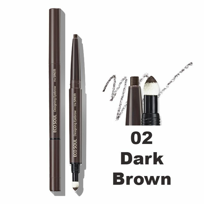 Купить The Saem Карандаш для бровей три в одном 0,2г+0,12г Eco Soul Designing Eyebrow, оттенок 02 Dark Brown