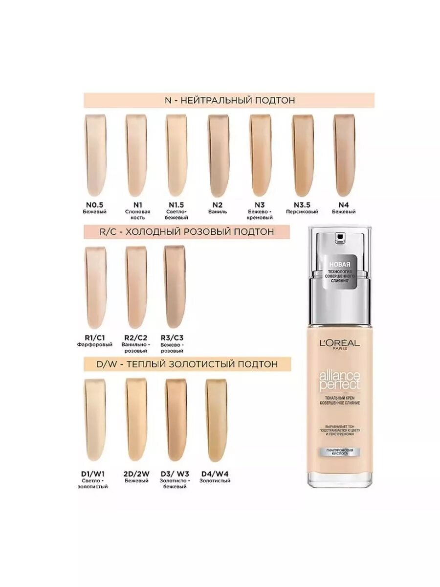 Крем тональный для лица `LOREAL` ALLIANCE PERFECT, тон 1.D/1.W (теплый подтон)