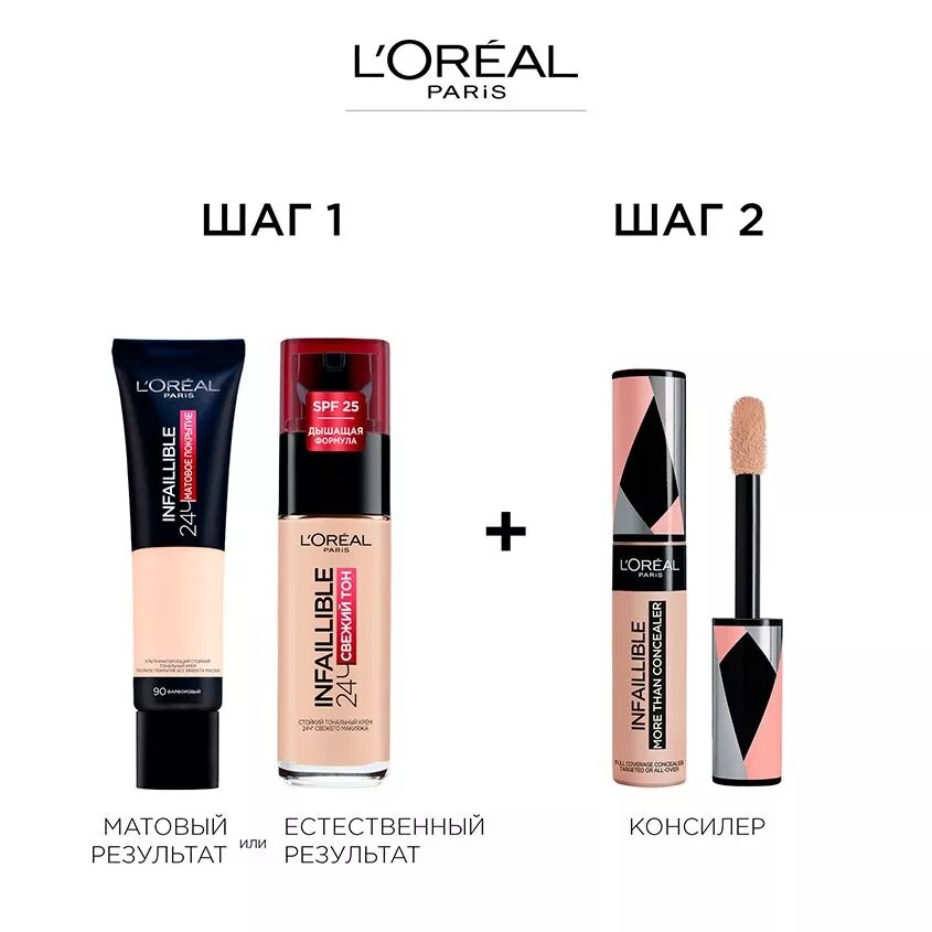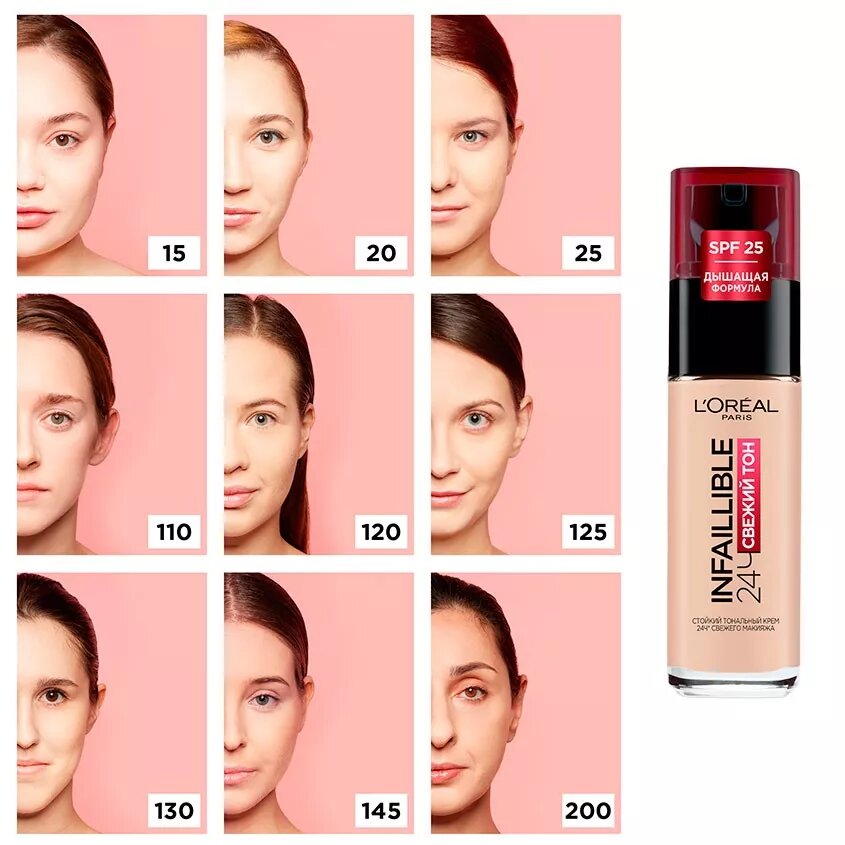L'Oreal Paris, Стойкий тональный крем INFAILLIBLE свежий ТОН с UV-защитой, оттенок 020, SPF 25, 30 мл