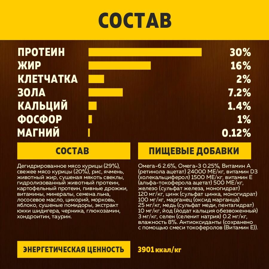 | Возраст животного | взрослые (1-6 лет) |