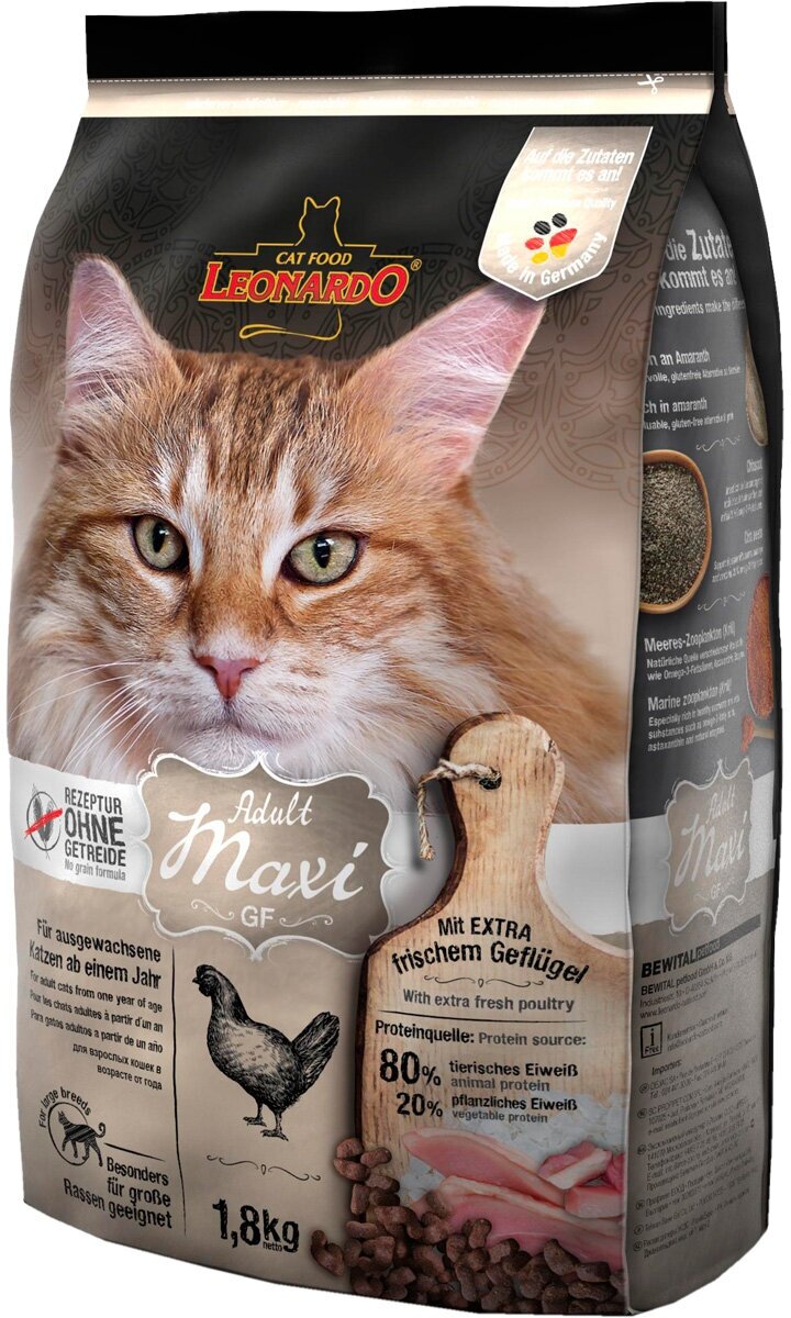 Сухой корм для кошек Leonardo MAXI беззерновой, с птицей 1.8 кг