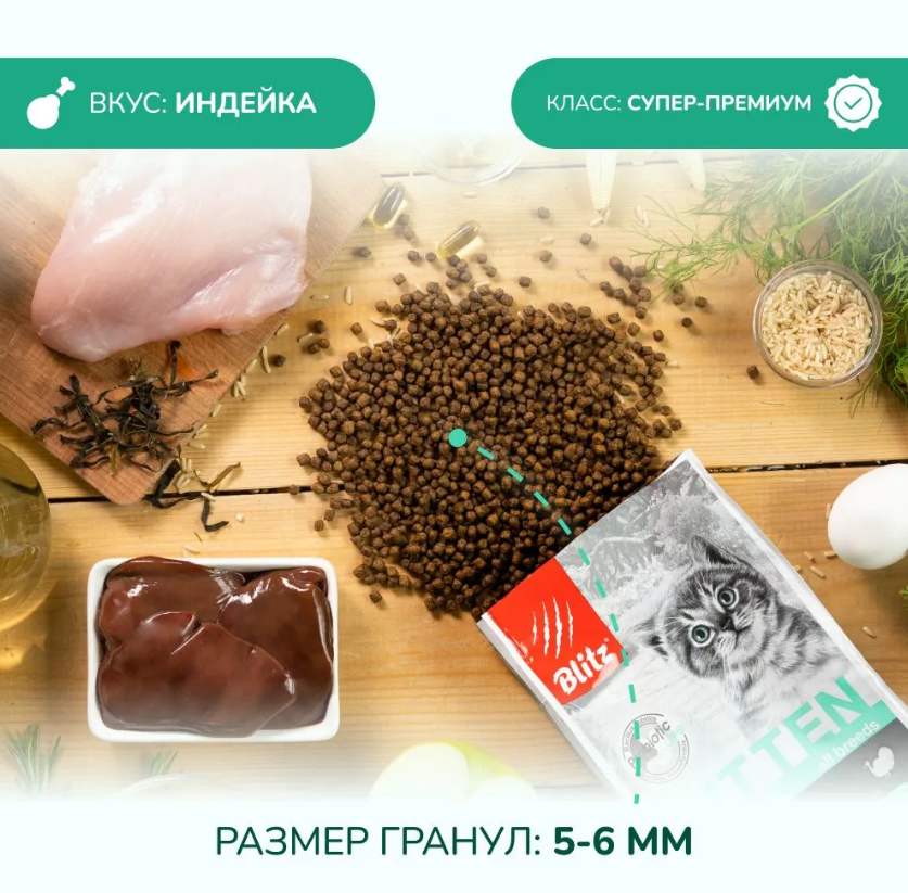 Корм сухой Blitz (pet) Blitz с индейкой для котят, беременных и кормящих кошек, 10кг