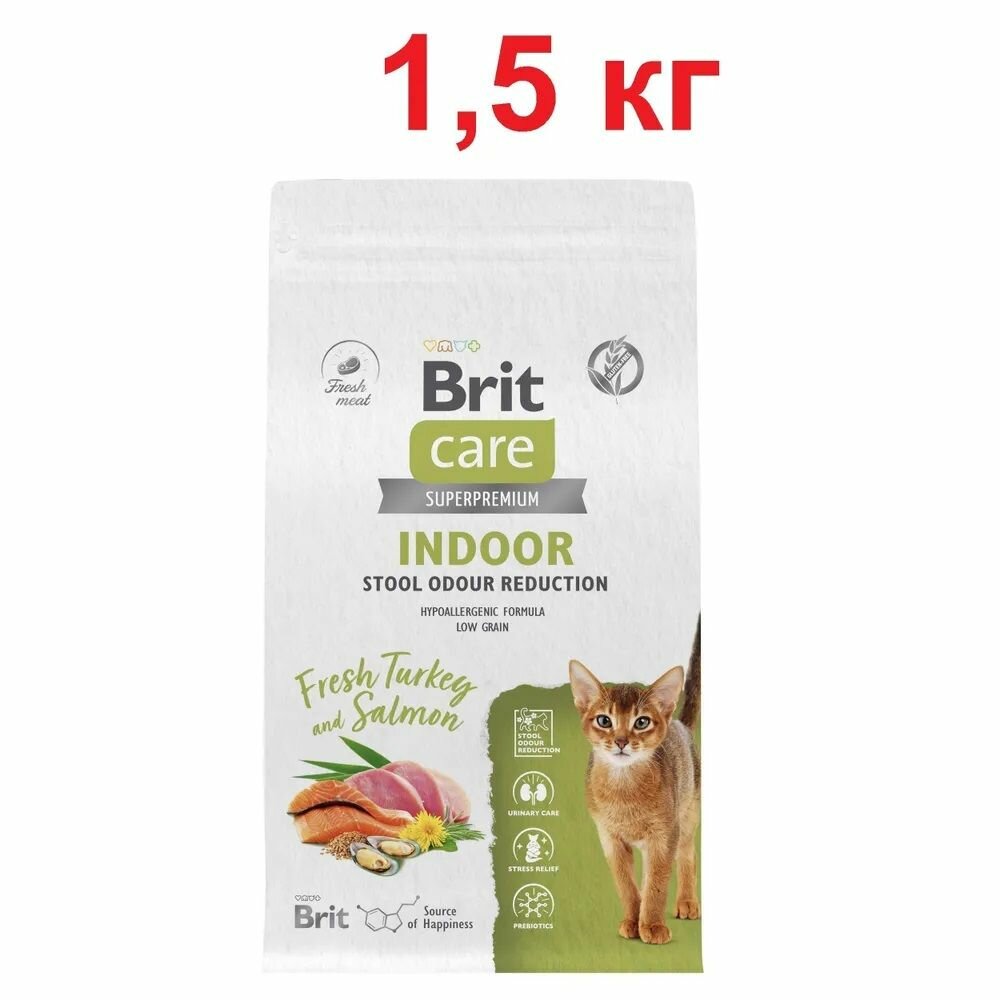 Купить Brit Сухой корм Care Cat Indoor Stool Odour Reduction с индейкой и лососем для взрослых домашних кошек Уменьшение запаха, 1,5кг