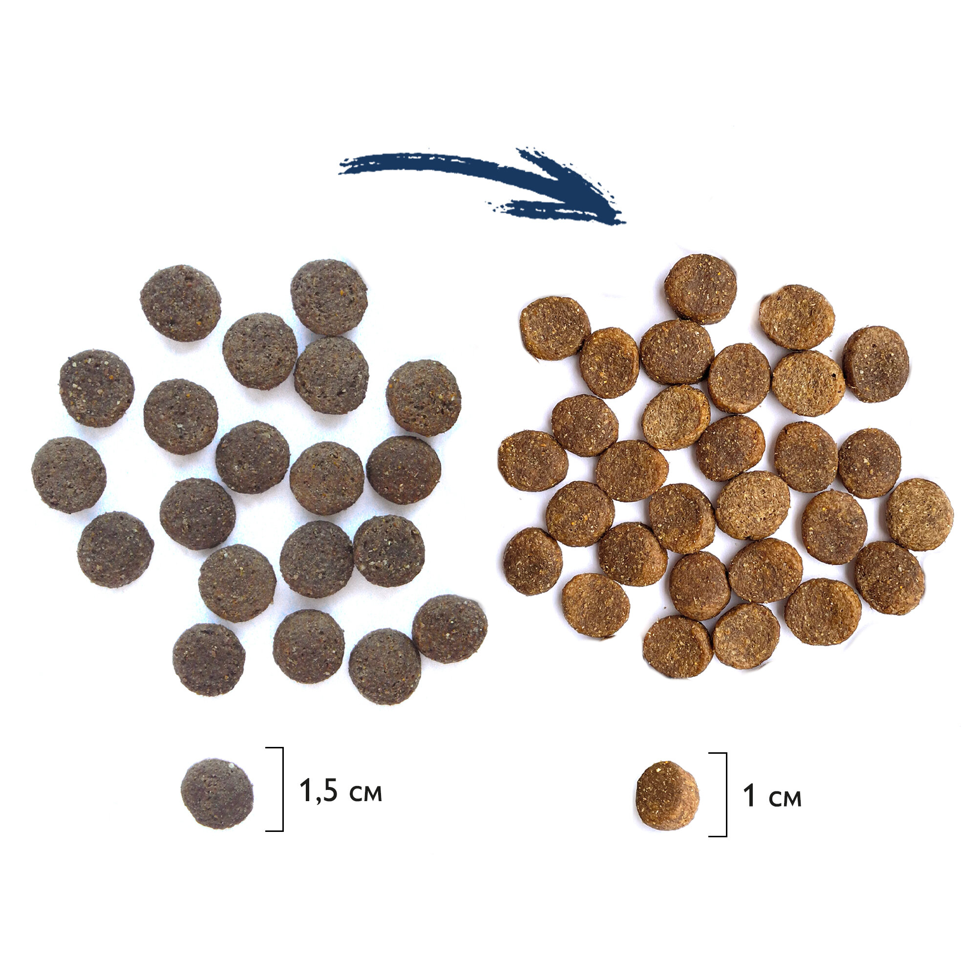 | Плюсы: | Размер гранул средний, как раз то что нужно средним собакам) |