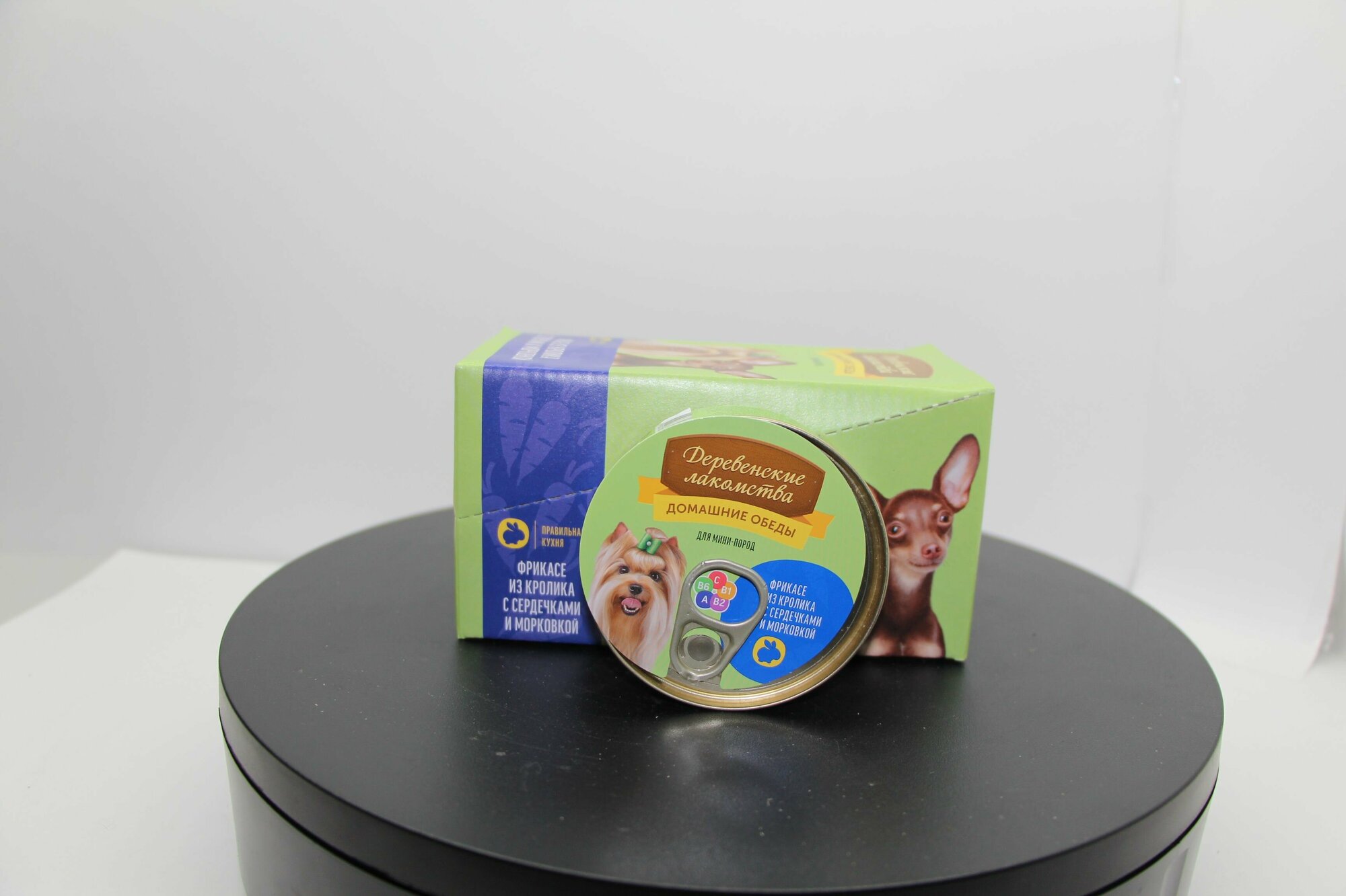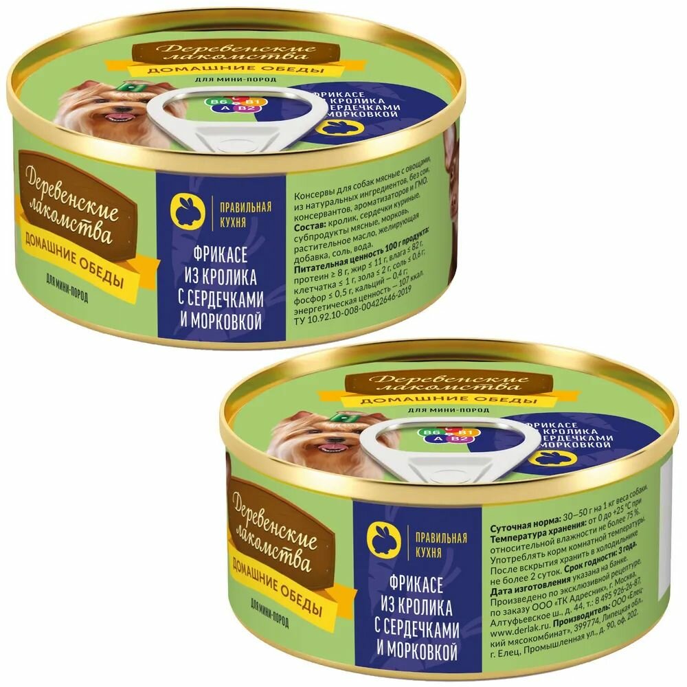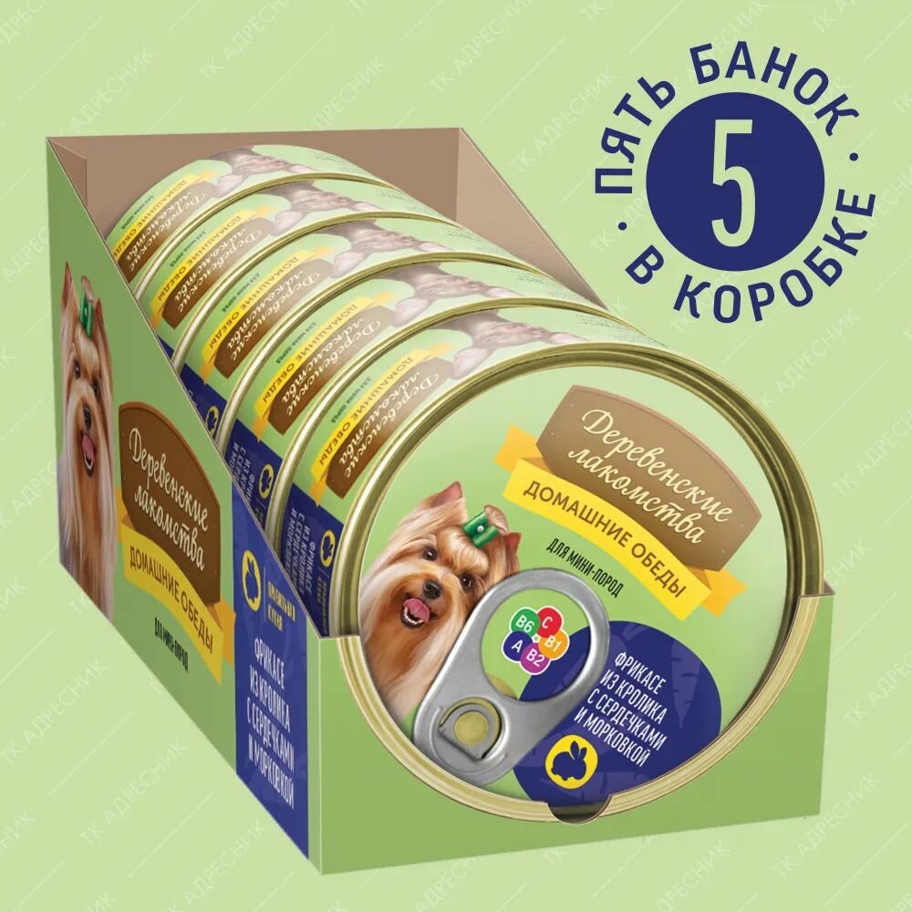 Купить Влажный корм для собак мини-пород "Деревенские лакомства - Домашние обеды" Фрикасе из кролика с сердечками и морковкой, банка 100 гр.*5 штук