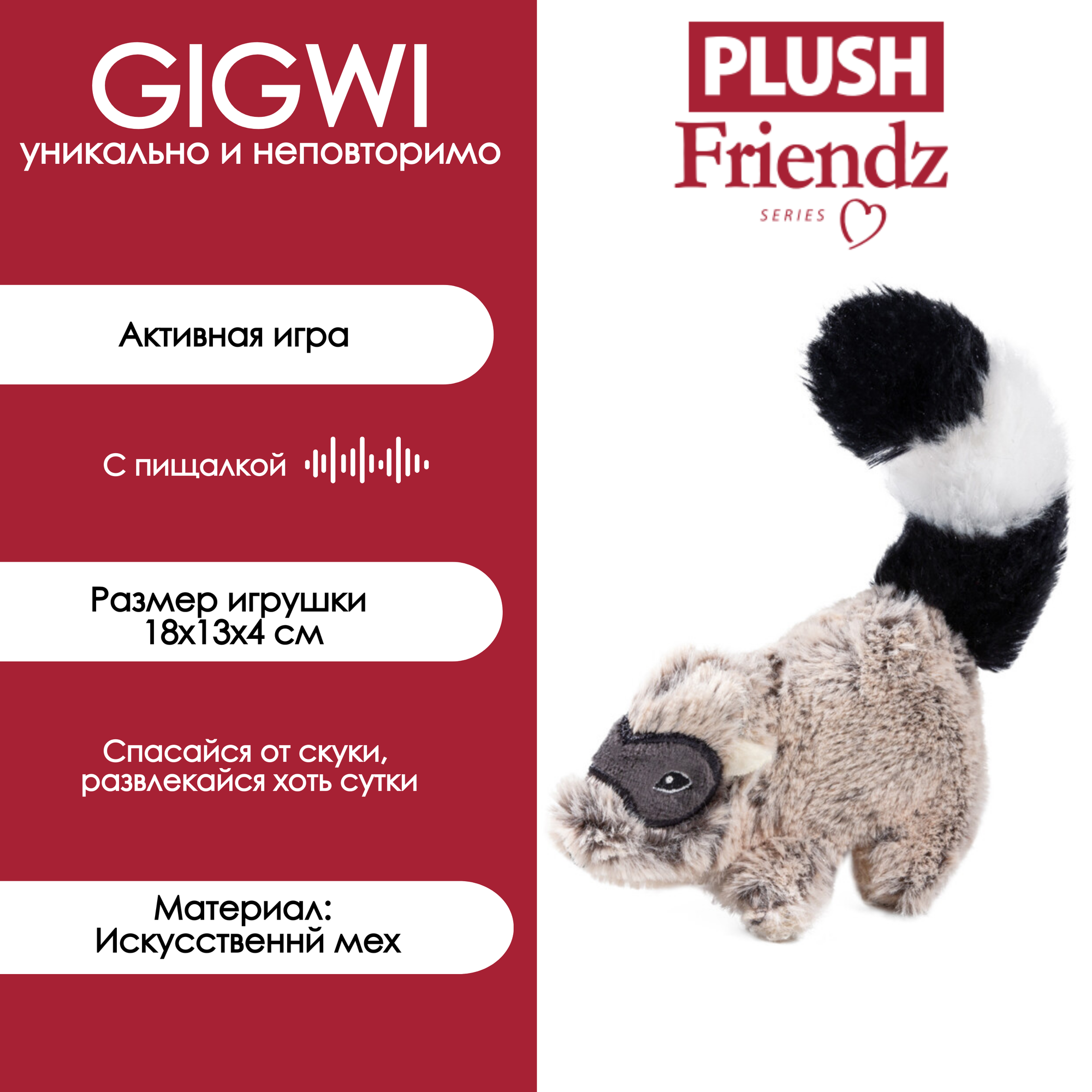 Игрушка для собак GiGwi / ГиГви Plush Friendz Енот с пищалкой текстильная, серый 16см / жевательная для активных игр