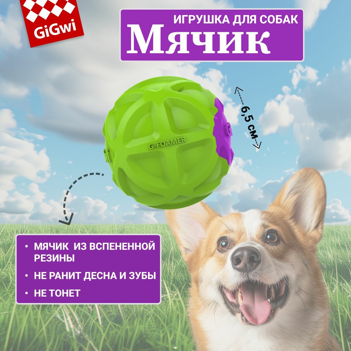 Мячик для собак GiGwi G-Foamer (75457), зеленый/фиолетовый, 1шт.
