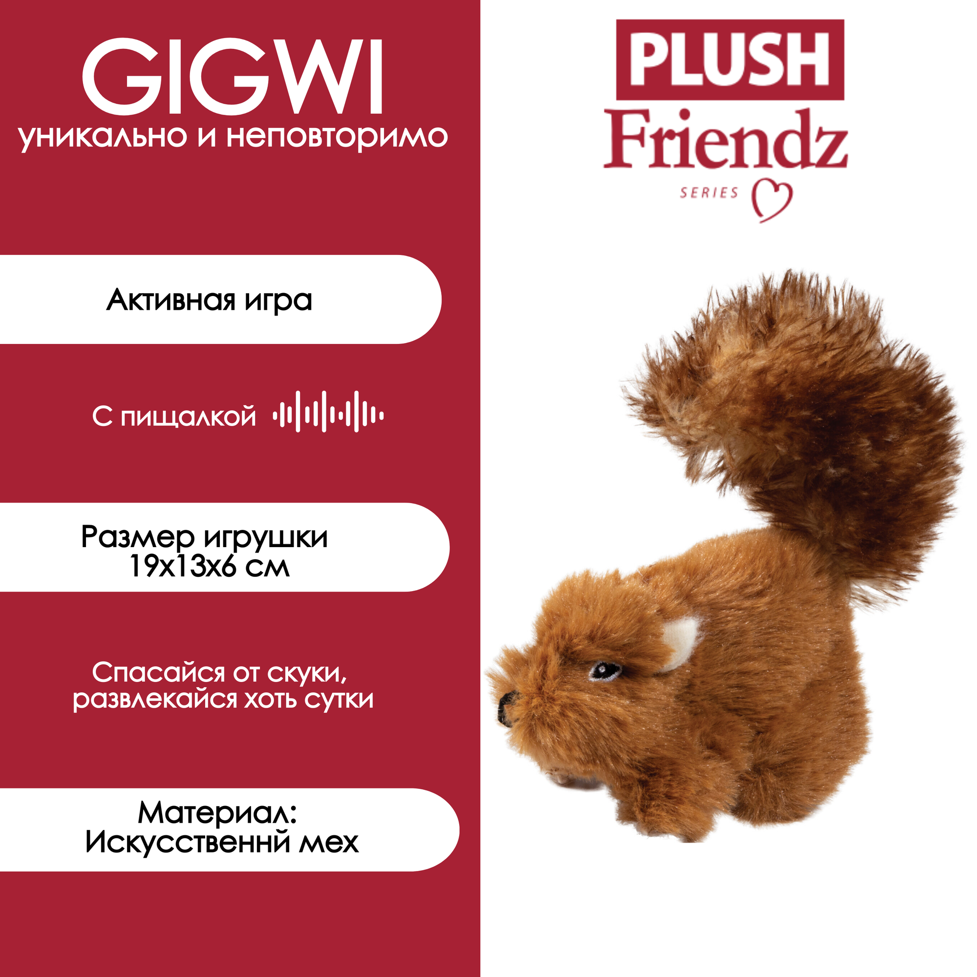 СохранитьGiGwi: Белка с пищалкой, игрушка для собак, серия PLUSH FRIENDZ, 16 см интересное: