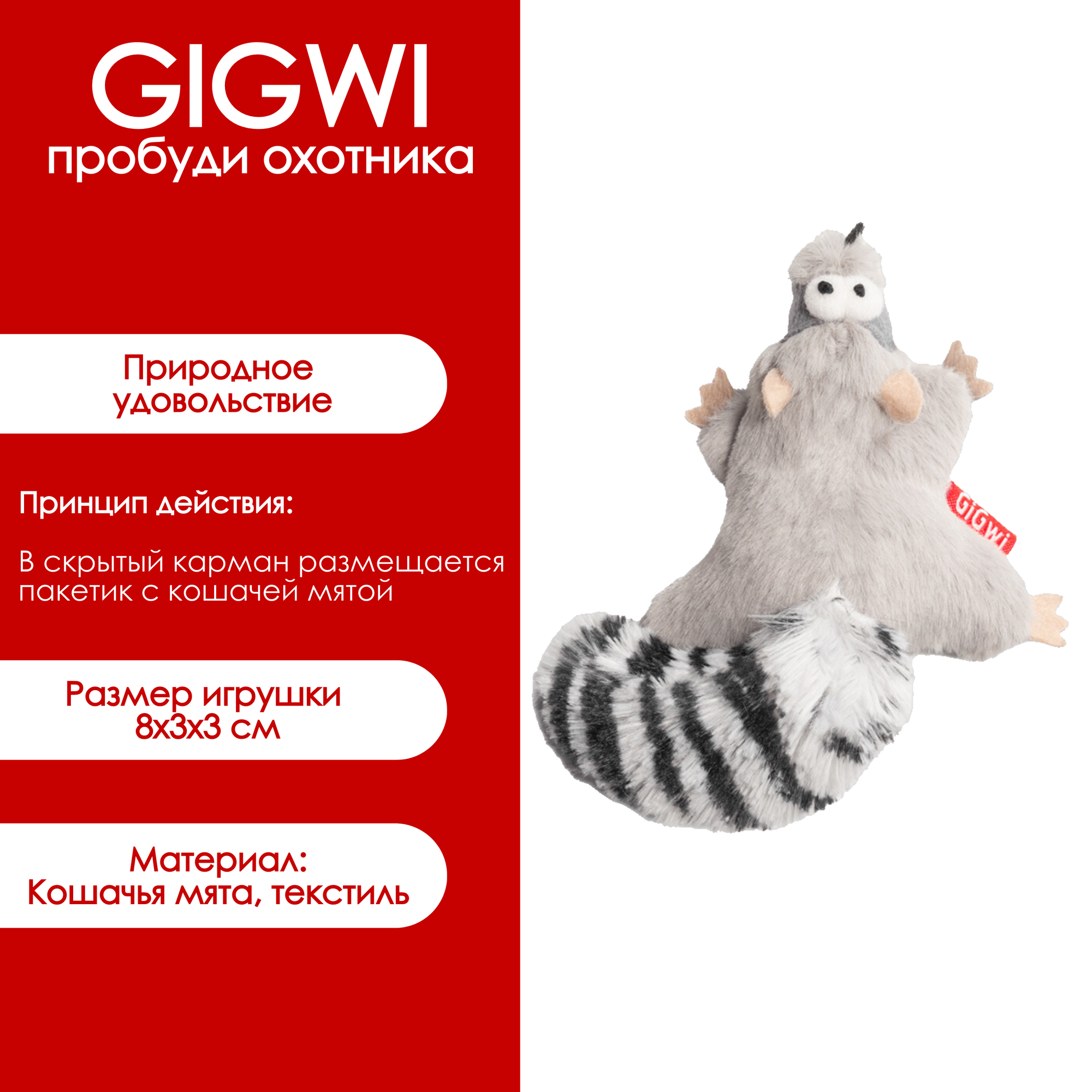 Купить Игрушка для кошек GiGwi Енот с кошачьей мятой 8 см, серия CATCH & SCRATCH