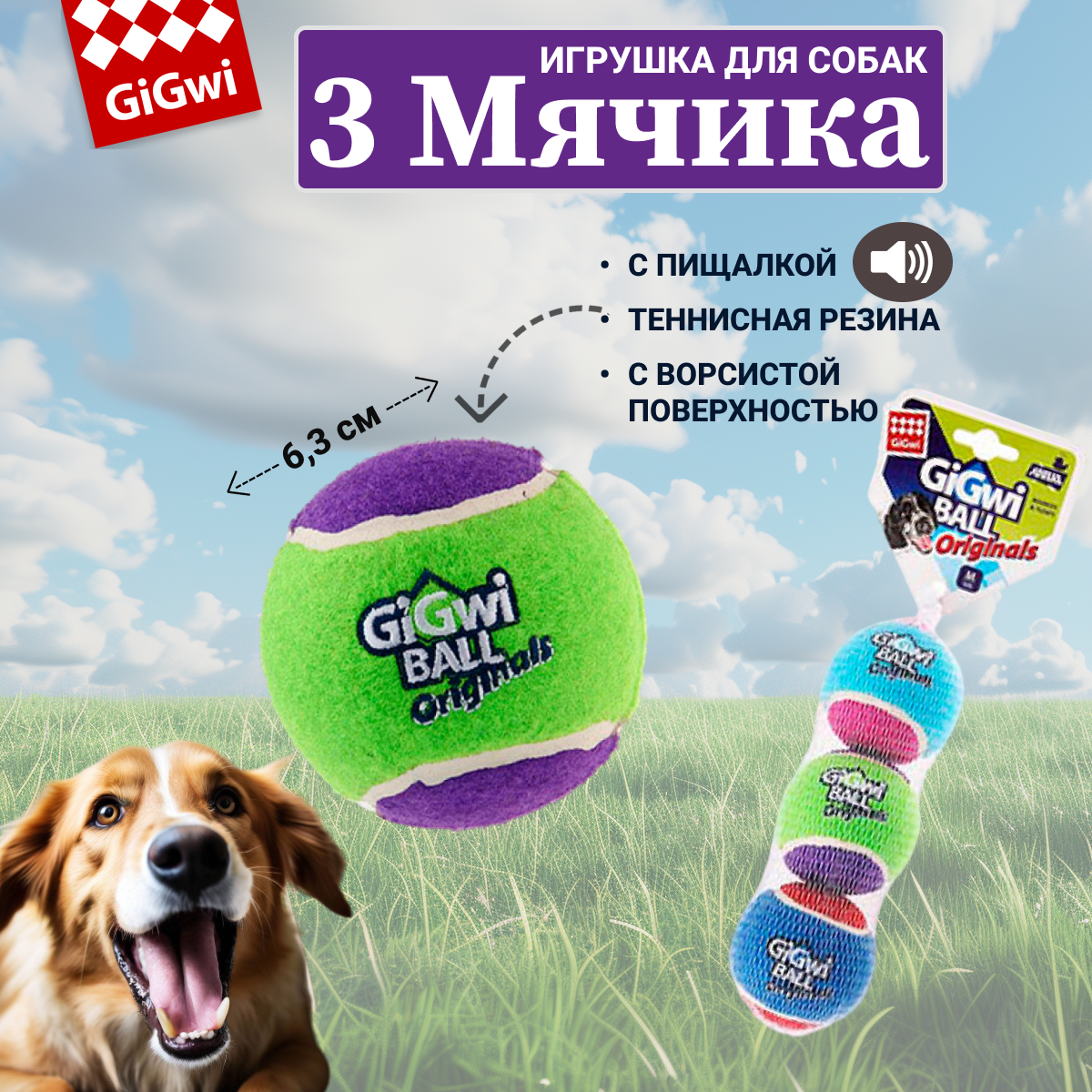 Купить GiGwi Игрушка три мяча с пищалкой теннисная резина 6,3 см 75338 0,19 кг 42553