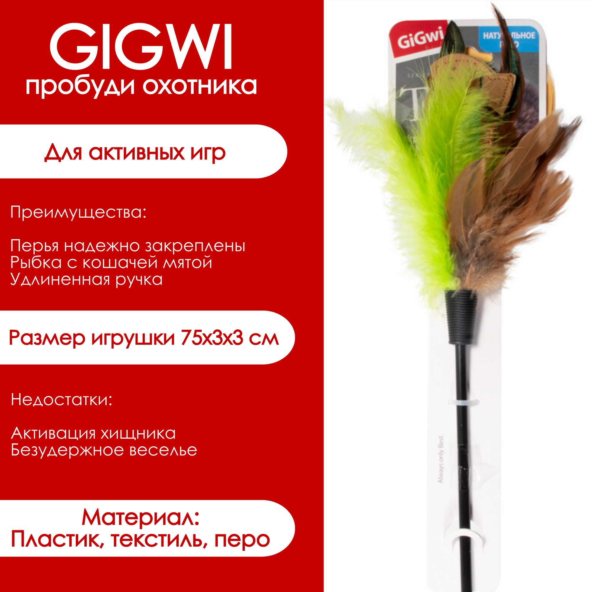 Игрушка для кошек Gigwi с рыбками на длинной палке 75см, серия FEATHER TEASER