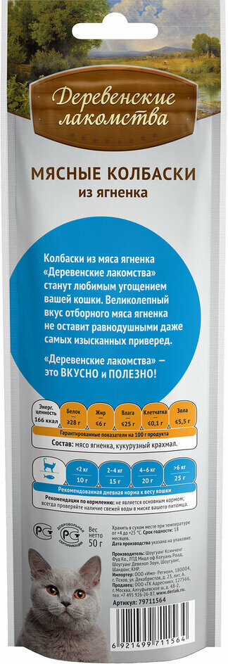 Деревенские лакомства 79711564 для кошек Мясные колбаски из ягненка 8шт*45г