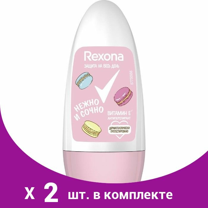Rexona Дезодорант-антиперспирант ролик Нежно и сочно с витамином Е без спирта и парабенов 50 мл - 2 шт