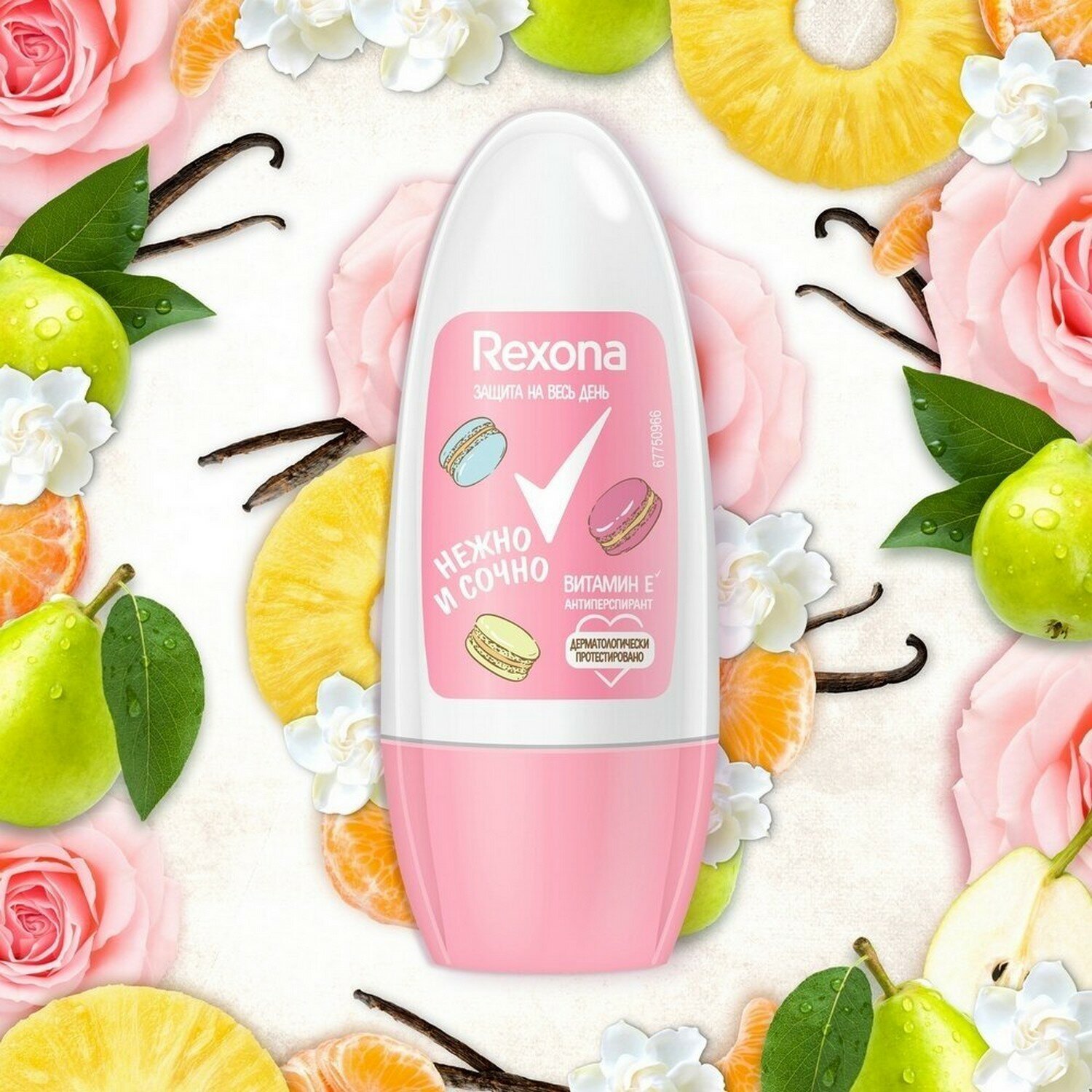 Купить Rexona Дезодорант-антиперспирант ролик Нежно и сочно с витамином Е без спирта и парабенов 50 мл - 1 шт