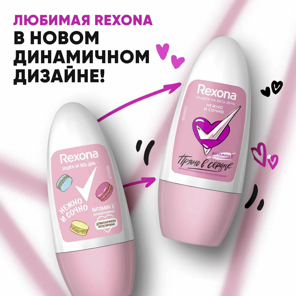 Rexona Дезодорант-антиперспирант ролик Нежно и сочно с витамином Е без спирта и парабенов 50 мл - 6 шт