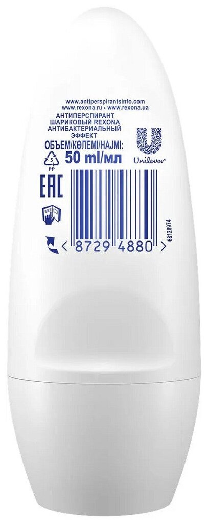 Unilever (Юнилевер) 5206 дезодорант Rexona/Рексона антиперспирант- шариковый Активный контроль / Антибактериальный эффект 50 мл
