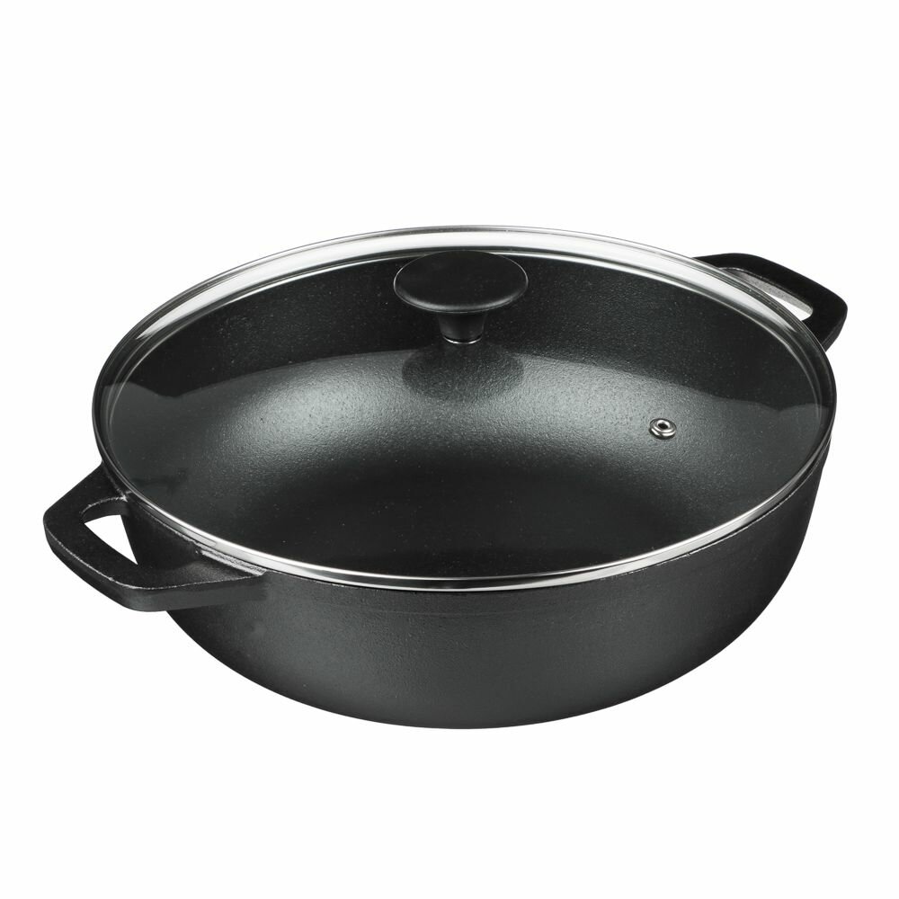 Вок чугун, d30х8,5см, стеклянная крышка