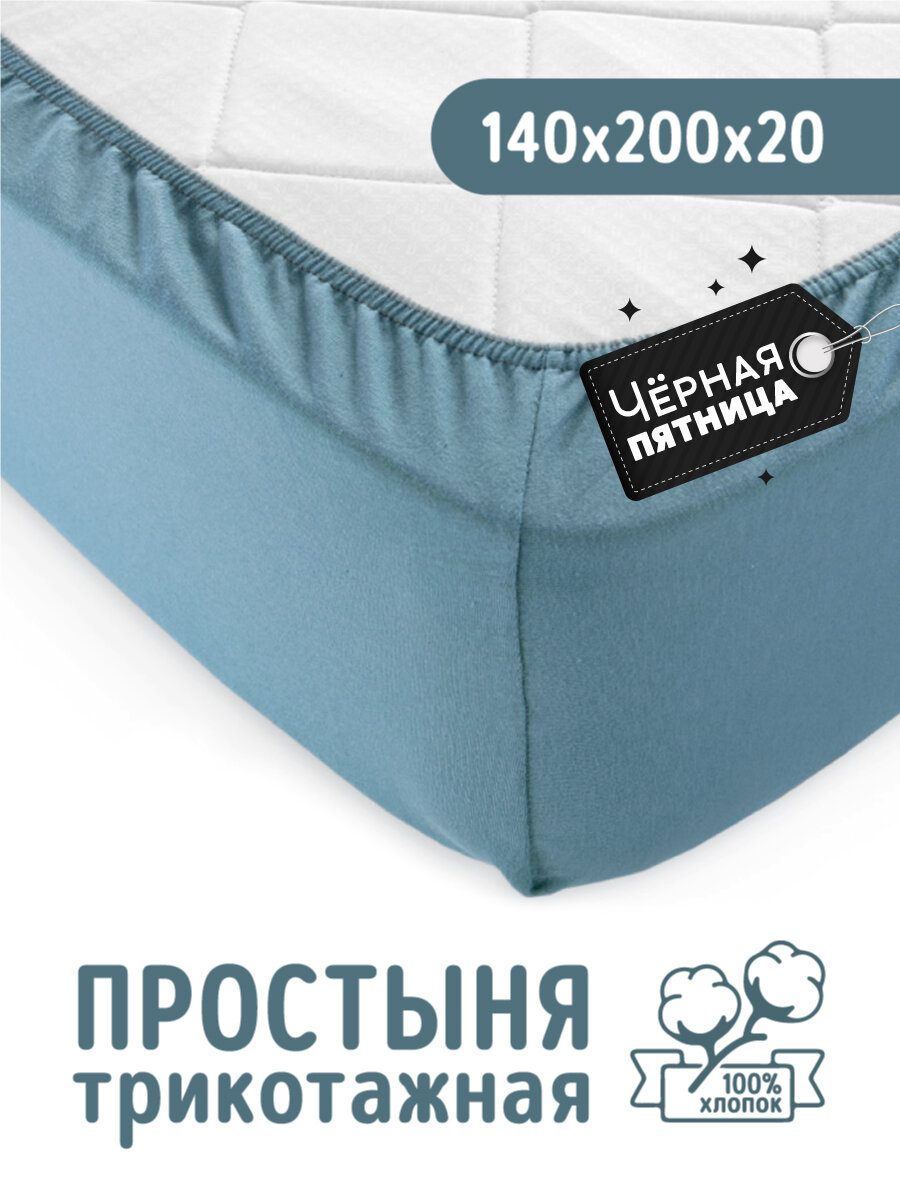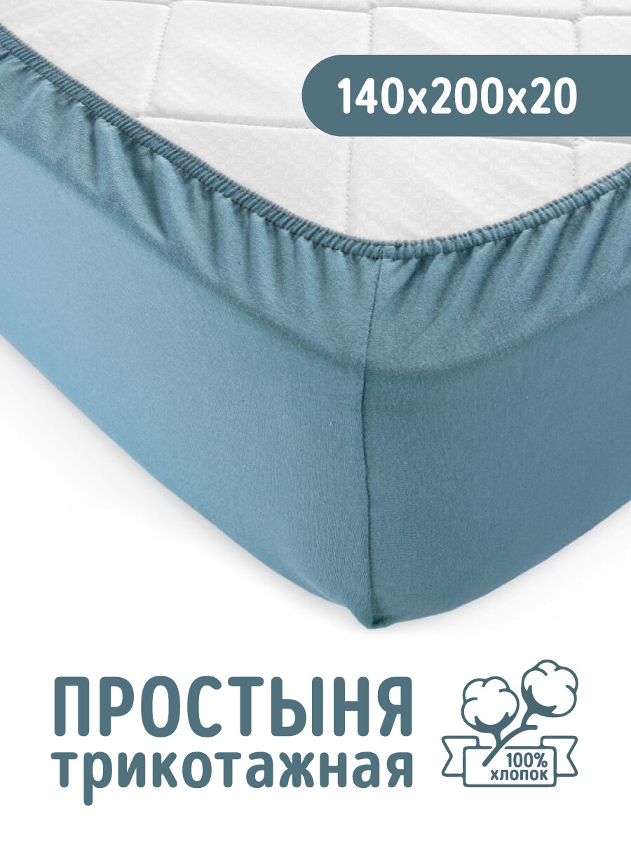 Простыня на резинке Небесный, 140х200х20, трикотаж, 100% хлопок