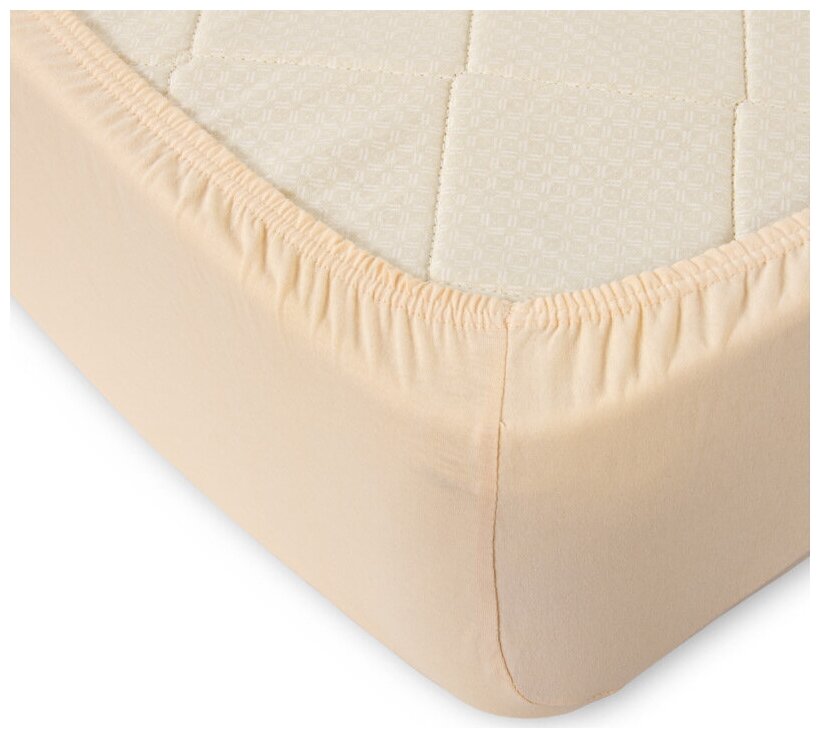 Простыня на резинке 60х120х20 Кремовая, трикотаж, хлопок 100%