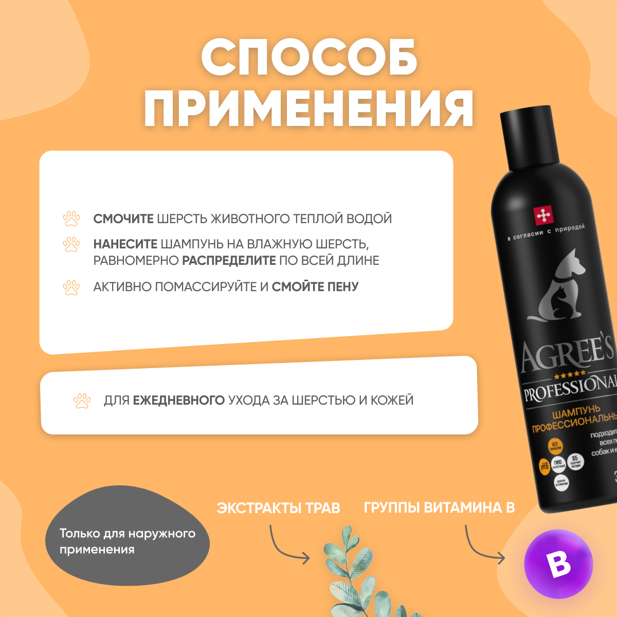 Купить Шампунь для собак и кошек Agree's for pets, для всех типов шерсти, 300мл