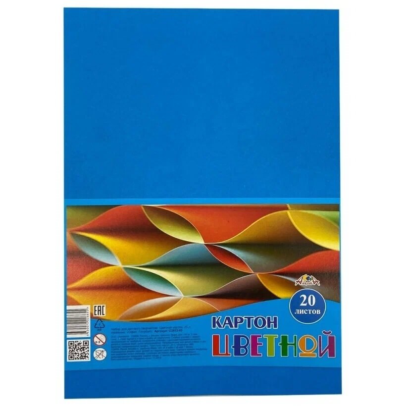 Набор цветного картона Офис Голубой А4, 20 листов, 1 цвет, немелованный, без скрепления Апплика С2672-03 - 1 шт.