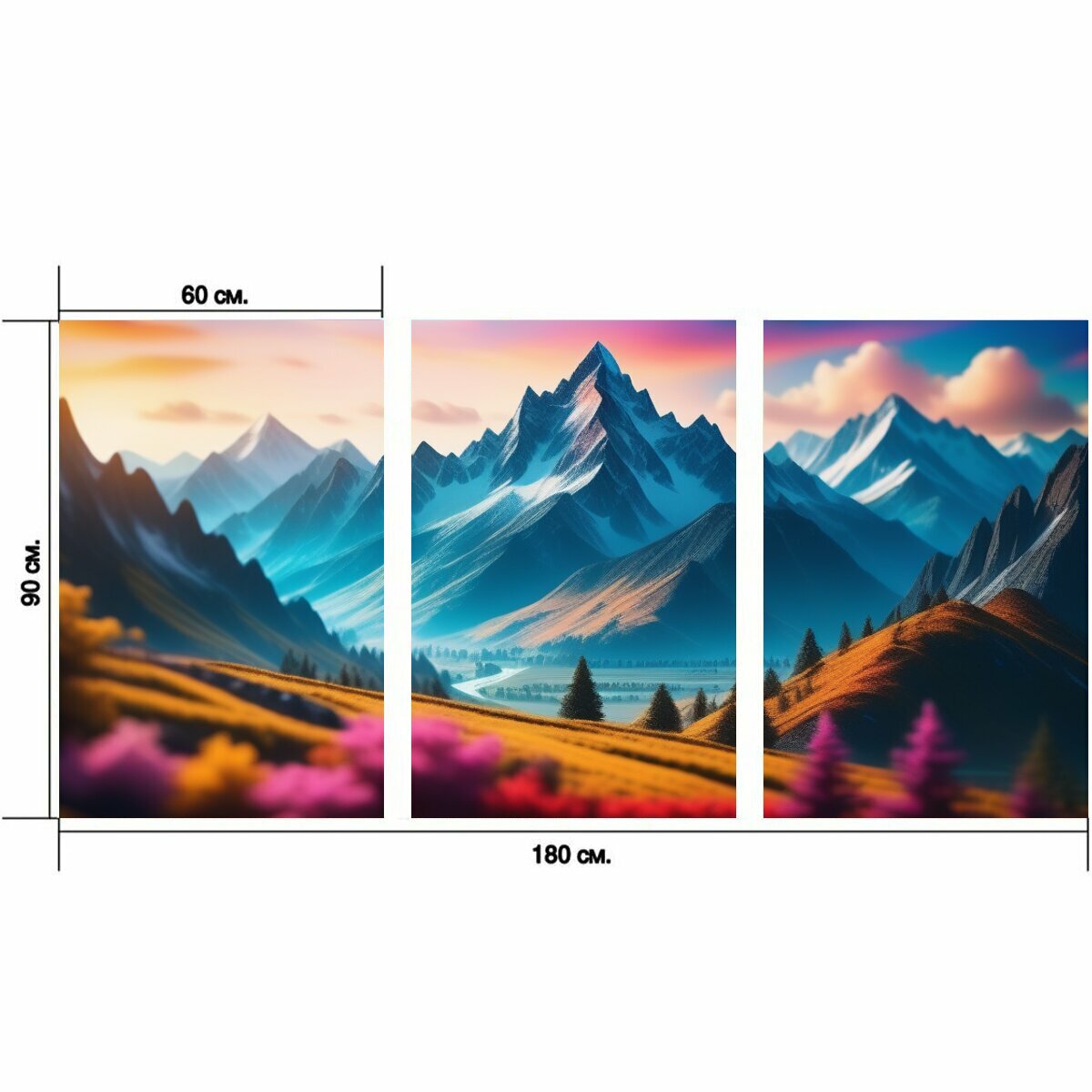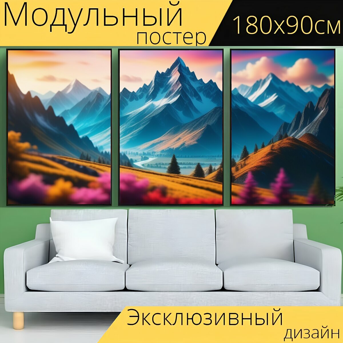 Модульный постер "Пейзаж с горами красками максимал, " 180 x 90 см. для интерьера на стену интересное: